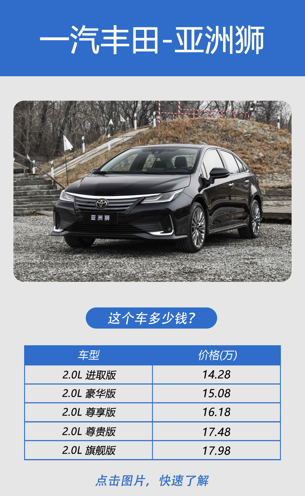 4月10日,一汽丰田旗下全新轿车-亚洲狮正式上市,新车共推出了5款车型,其官方指导价为14.28-17.98万元。作为一款全新的紧凑型车产品,亚洲狮的定位介于卡罗拉和亚洲龙之间,定位更高的它,有何进步?又有何特点呢?赶紧动动小手,点击下方图片快速了解!