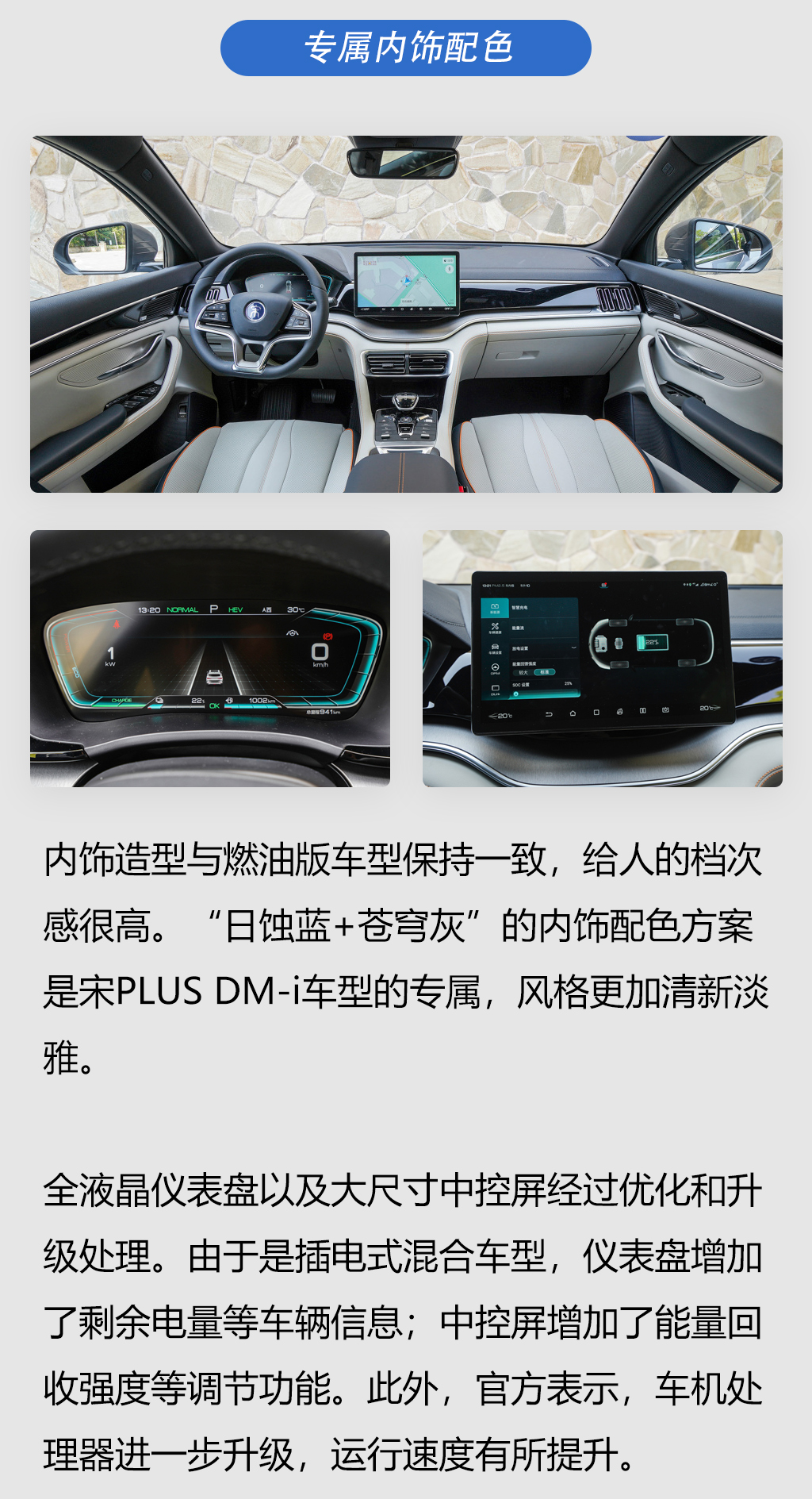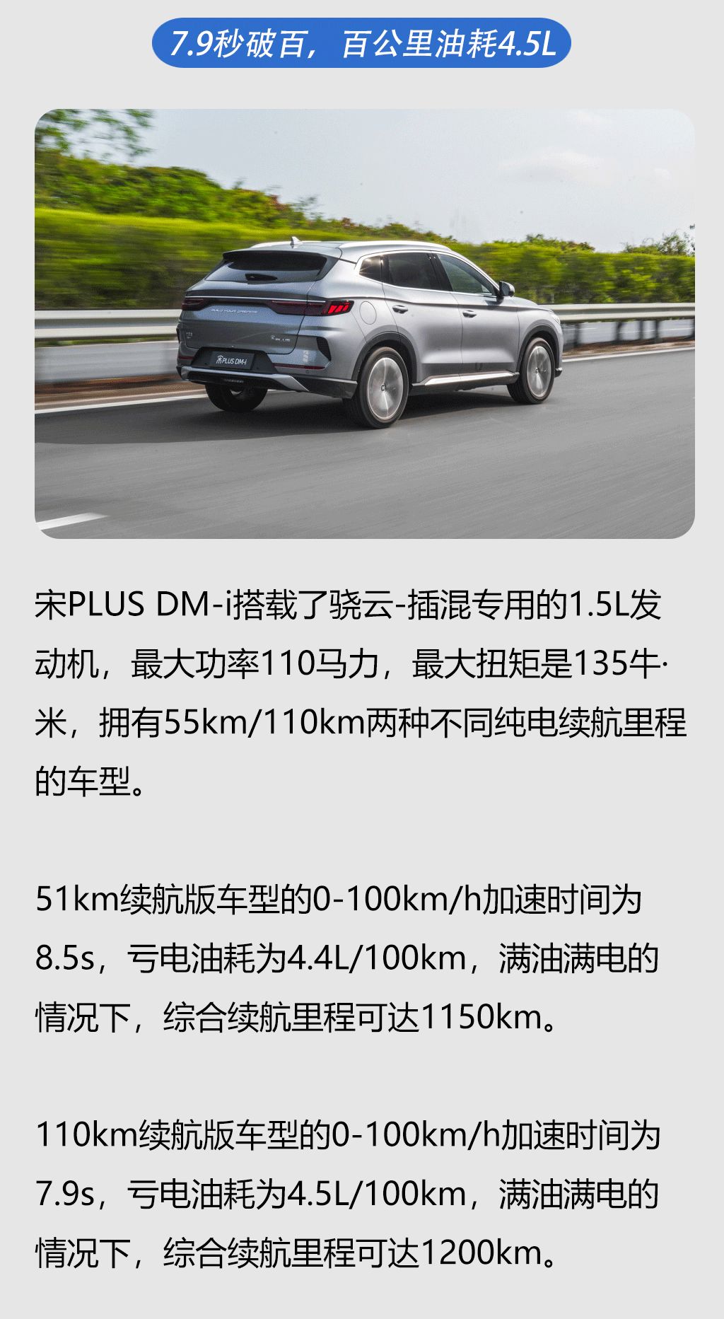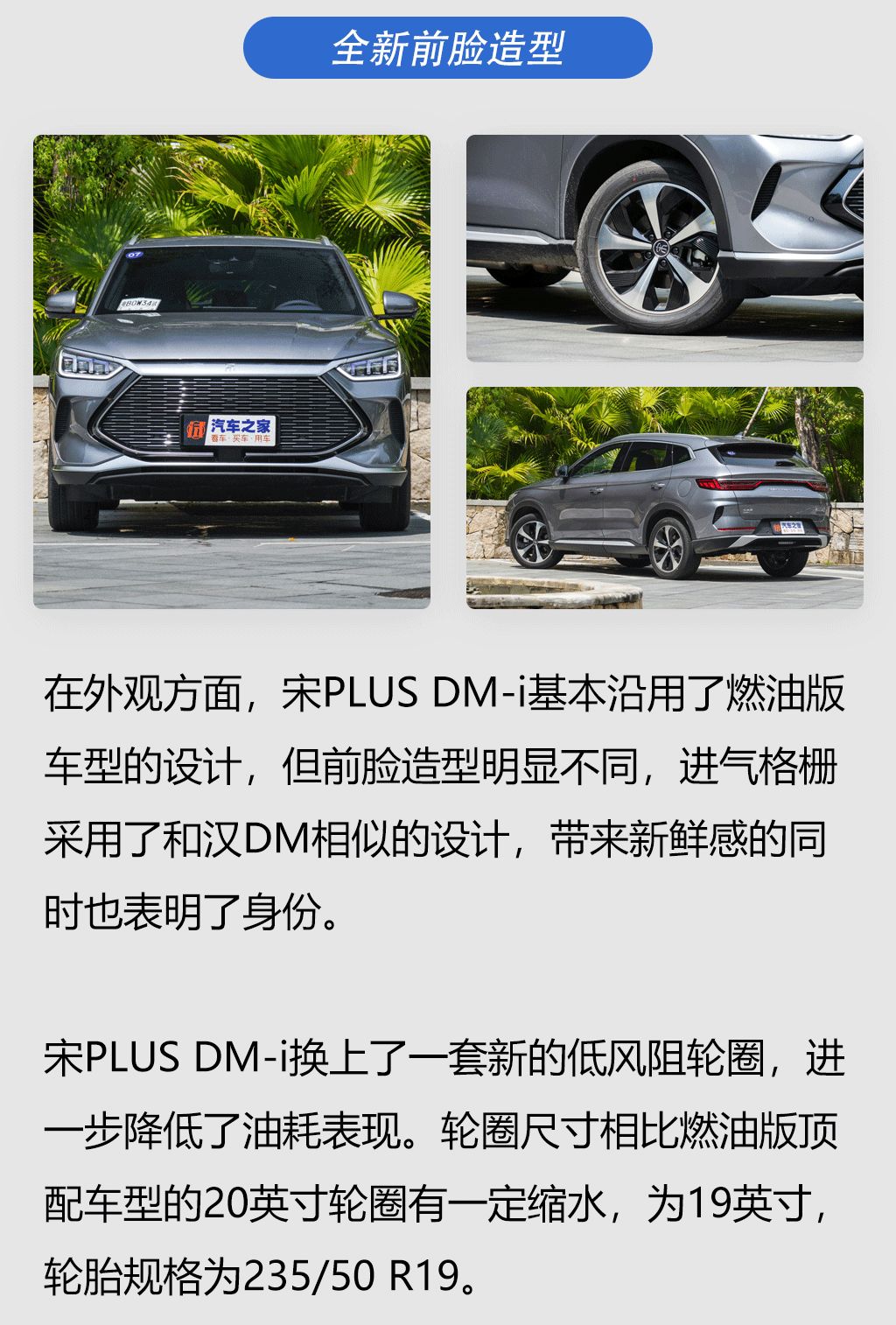 宋PLUS DM-i继承了宋PLUS燃油版车型在外观和内饰方面的诸多优点,在细节之处进一步优化升级,并保留了比亚迪车型一贯的高配置标准。它是比亚迪旗下第二款搭载DM-i混动技术的车型,有着超低的油耗表现,极大地降低了用车成本,且兼顾了动力表现。