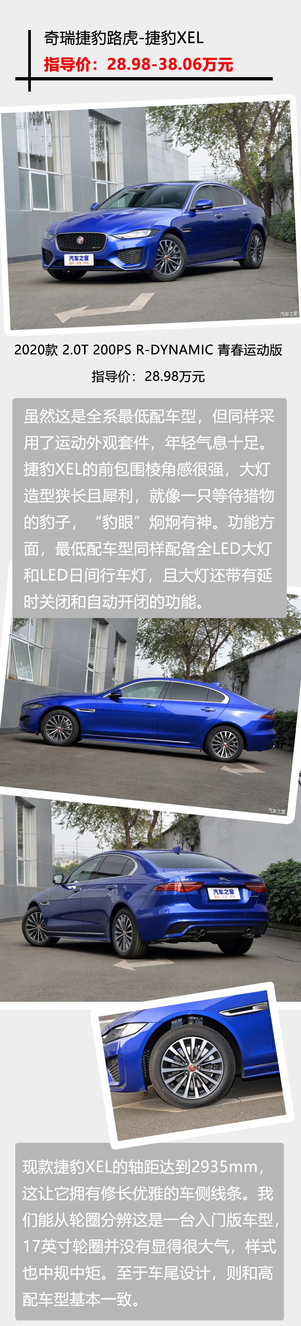 裸车价直逼雅阁、凯美瑞,这台豪华品牌中型车的优惠力度着实是让人惊喜。没错,今天我们就来聊聊捷豹XEL,定位豪华中型车的它,指导价区间28.98-38.06万元,其中最低配车型2020款 2.0T 200PS R-DYNAMIC 青春运动版在28.98万元的指导价基础上还有近7万元的优惠(汽车之家车主真实价格显示裸车价仅22万元出头),这样实惠的价格着实让很多年轻消费者心动。那么最低配车型的配置水平如何呢?下面就一起来看看。