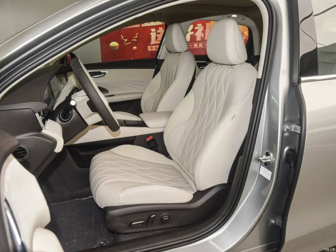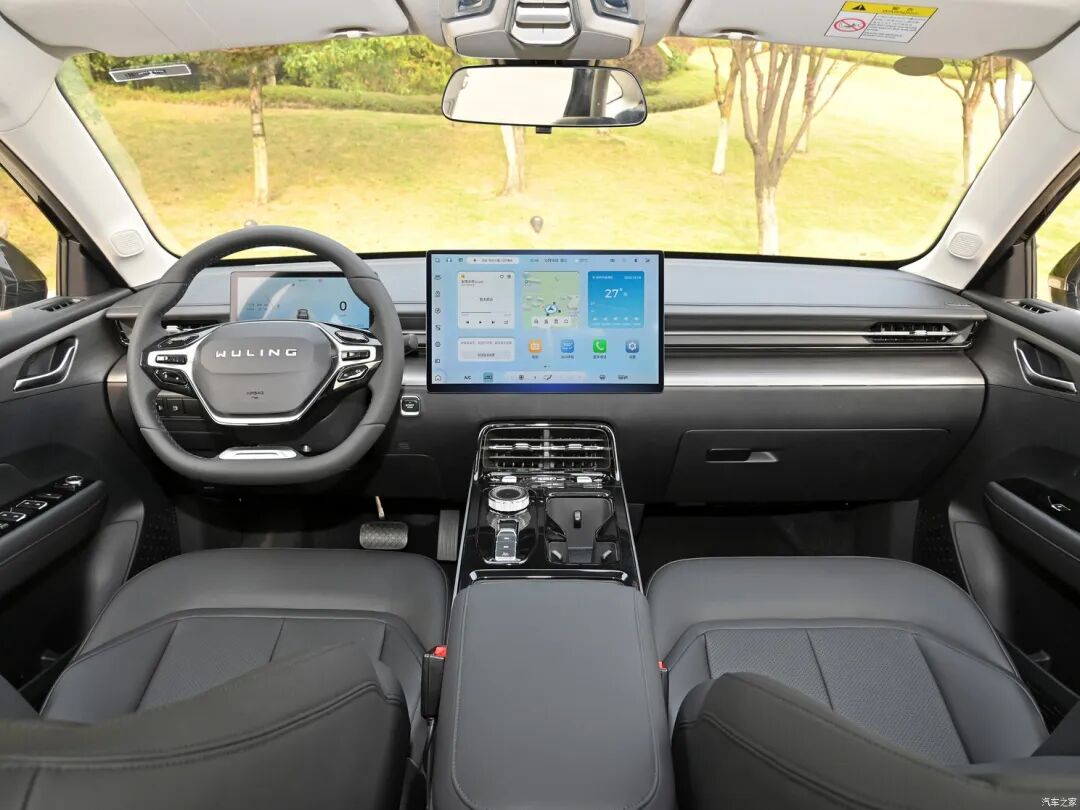 新车内饰风格和外观一致,也是使用了较多的笔直线条,整个中控台层次清晰。材质上通过诸多软质材料包裹,以及局部的翻毛皮材质来增加质感。其它部分,10.2英寸全液晶仪表和12.3英寸中控触摸屏都是全系标配,使用体验想要达到新势力品牌车型的那般丝滑还有一定差距,但好在诸如CarPlay等功能都有提供。
