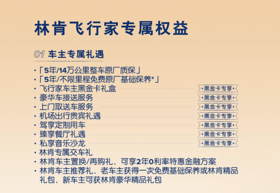 林肯官方信息显示,目前购买飞行家还可享受5年/不限里程免费原厂基础保养(限每年2次,5年10次机油/机油滤芯更换及工时费,含首保)、豪华车接送、上门取送车等专属礼遇,小保按1626元/次计算的话,这样又能省了16260元。综合来看,飞行家的养车成本在豪华品牌中大型SUV中算是比较实惠的。