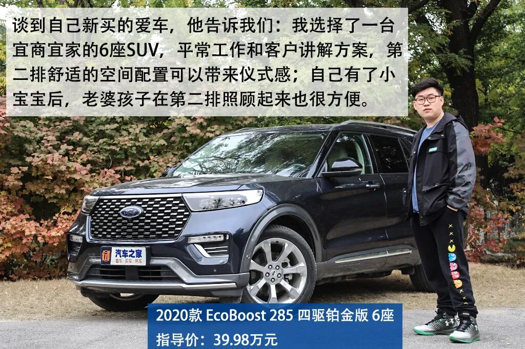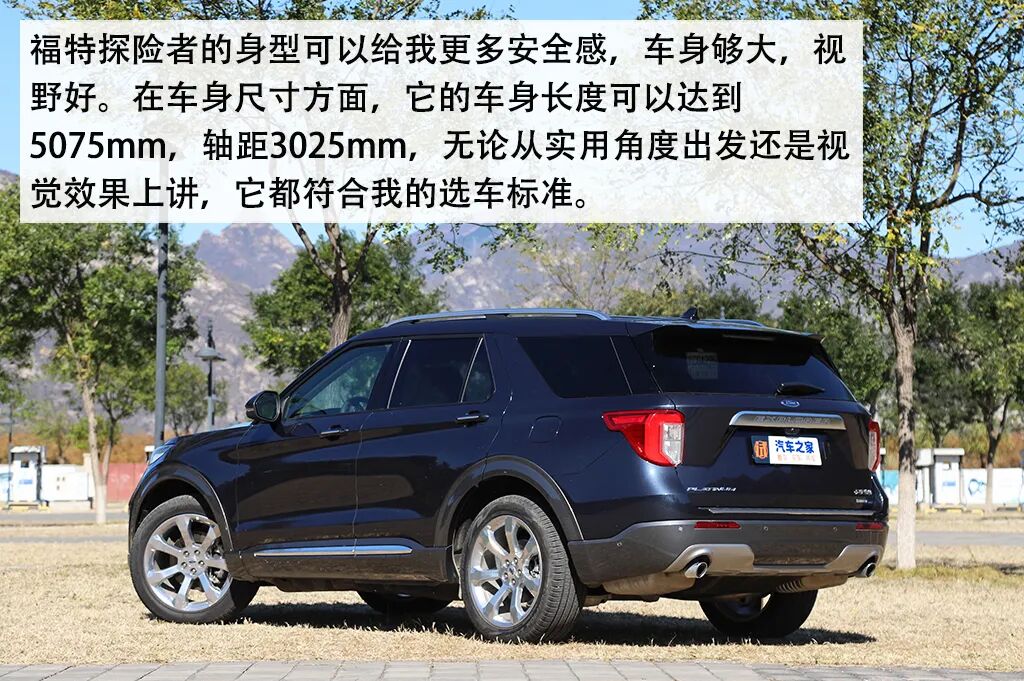 车主有话说:确定福特探险者之前我也看过其它产品,豪华品牌车型做工、品质提升,但价格超出预算;而有些同级别竞品在配置设计上不能满足我。综合来看,福特探险者才是我需要的车型,在用车的这段时间里,它在生活工作上给予了我不小帮助,洽谈合作的客户和我的家人都很满意。