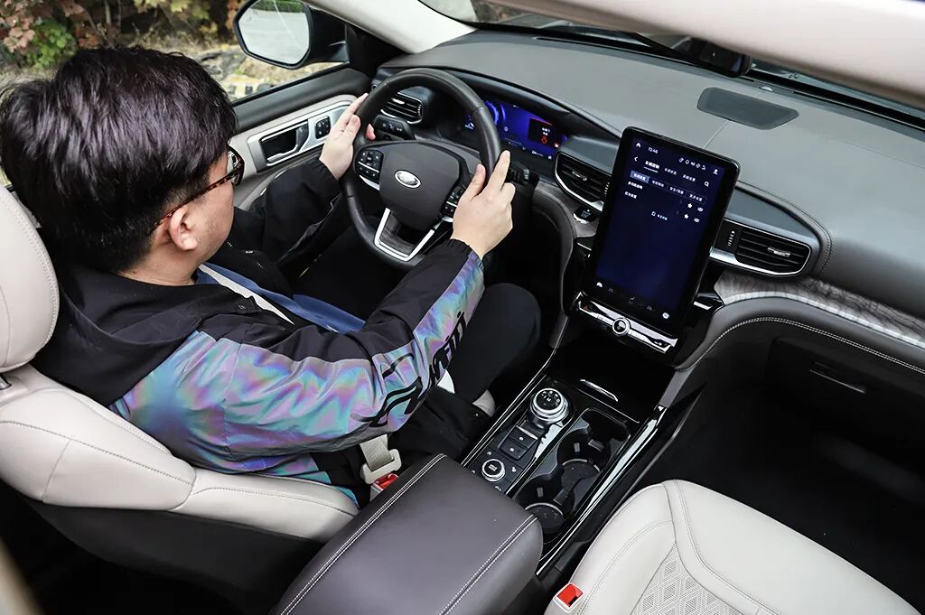 福特探险者的整备质量接近2吨,但工程师特意将油门踏板初段调校的偏向灵敏,尤其在拥堵路段走走停停,这台中大型SUV行走起来并不吃力。