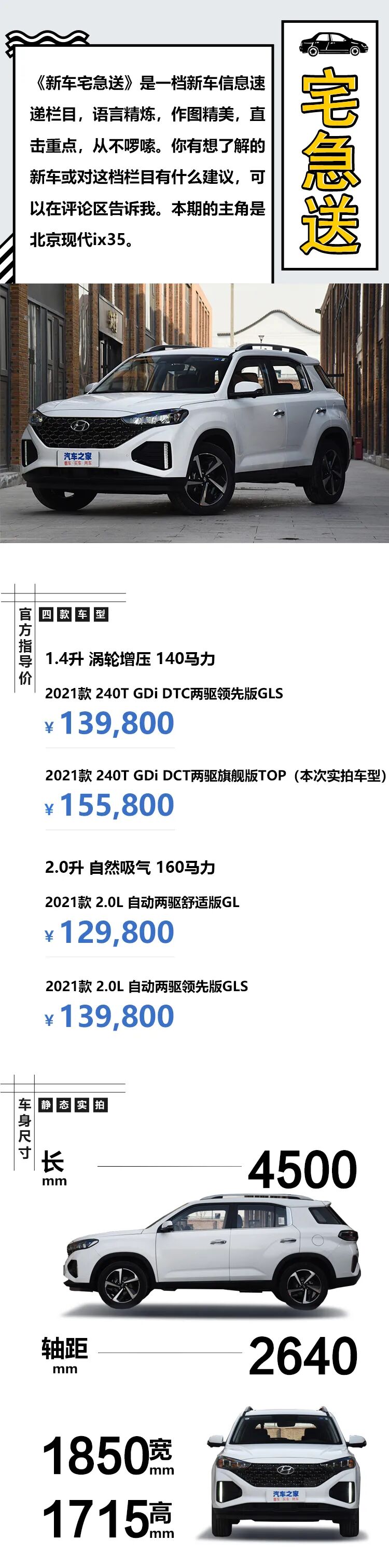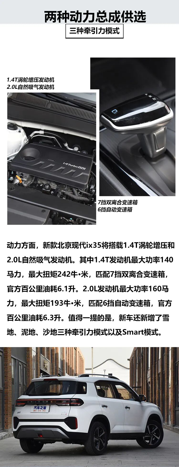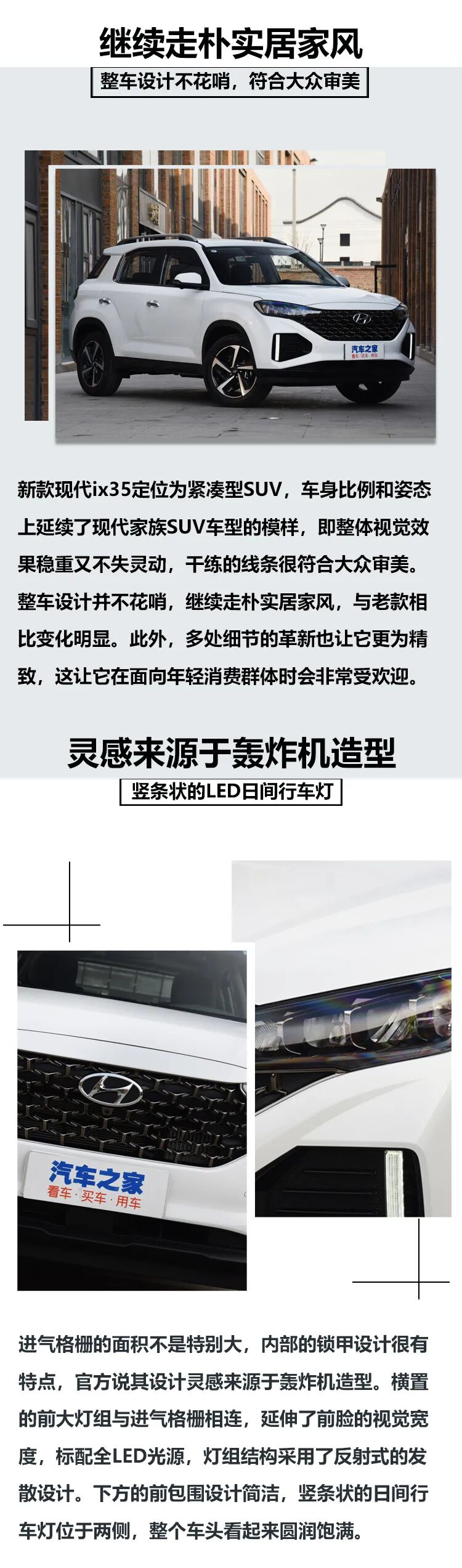 从实拍体验来看,新款现代ix35的表现足够抢眼。新车外观更显精致,内饰科技感更强,车内空间可以满足一般家用需求,安全配置丰富,各项产品力均衡,而且售价也非常亲民,韩系车一贯的特点同样没落下。目前,北京现代ix35还有新车销售政策,包括直送3000元消费券和首付10000元起、最高3年免息(首付10000元活动限指定融资租赁产品)的补贴与免息升级等购车大礼包,喜欢的朋友可以关注一下。