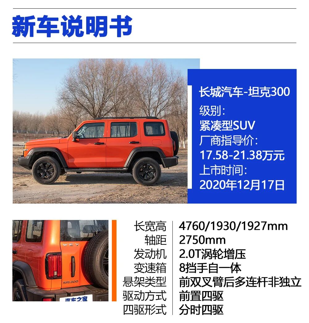 上月,长城汽车WEY品牌旗下的全新车型——长城汽车-坦克300正式上市了,新车定位为紧凑型SUV,共推出三款配置车型,指导价区间17.58-21.38万元。坦克300是“坦克·WEY”平台下的首款车型,它的各项车辆功能有何亮点?本期《新车说明书》为你解答。