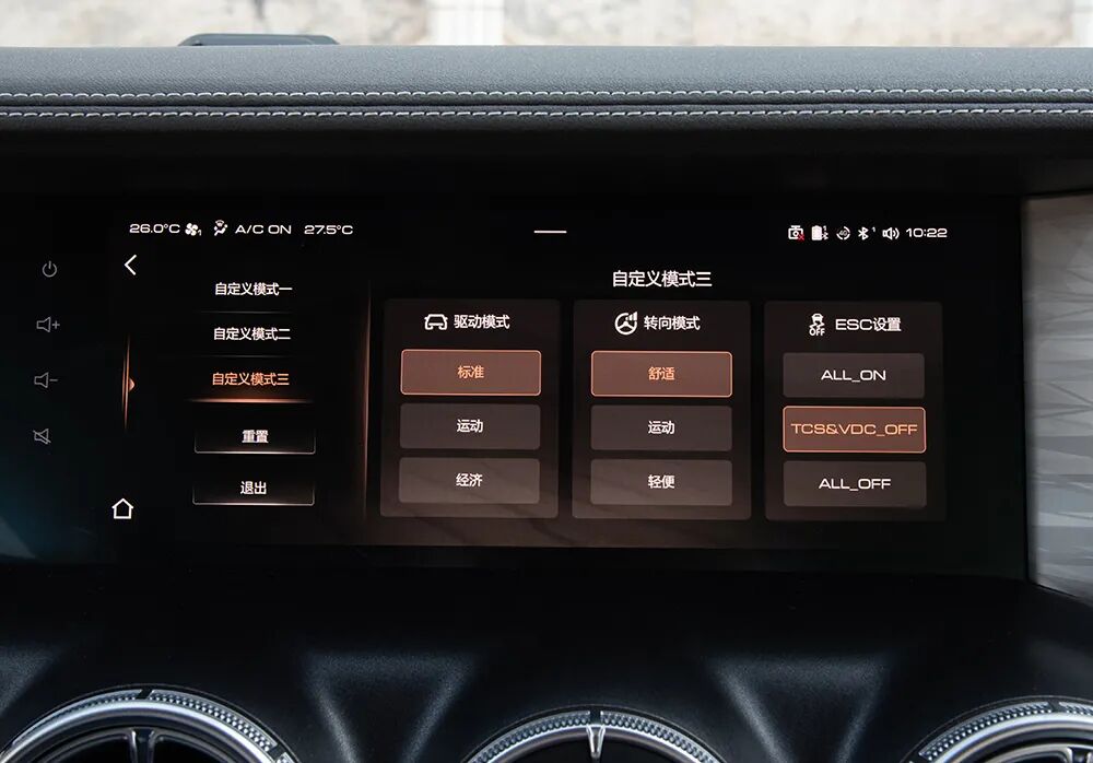 专家模式下驾驶员可以根据驾驶需求自定义车辆的驱动模式、转向模式及ESC开关,从而使车辆更适合您的操作方式及舒适性。