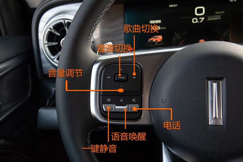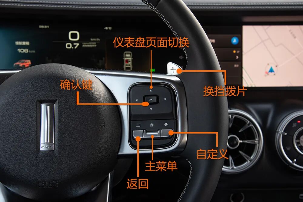 方向盘采用了三辐设计,三、九点位置比较粗壮,两侧的多功能按键回馈手感很棒,按键面积较大,方便操作。