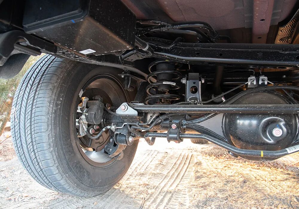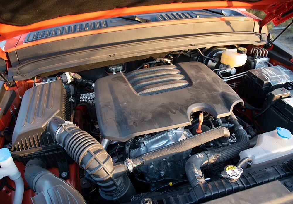 动力方面,新车搭载了2.0T涡轮增压发动机,最大功率227马力,峰值扭矩387牛·米,匹配8挡自动变速箱。悬架方面,它采用前双叉臂式独立悬架、后多连杆非独立悬架,并且采用非承载式车身。搭载了来自博格华纳的分时四驱系统,顶配车型配备了前/后差速锁(中配车型前桥差速锁需要选装)。