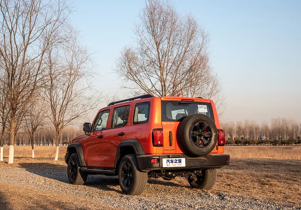 方正的车尾与车头风格相呼应,外挂式的备胎和长方型的LED尾灯是车尾的亮点,“小书包”一背贼有范儿。配备了17英寸的轮圈,并使用了规格为265/65 R17的HT轮胎,还可以加2000元升级为AT胎。整体来看,坦克300的外观设计完成度非常高,在它身上很难找到不成熟的地方。