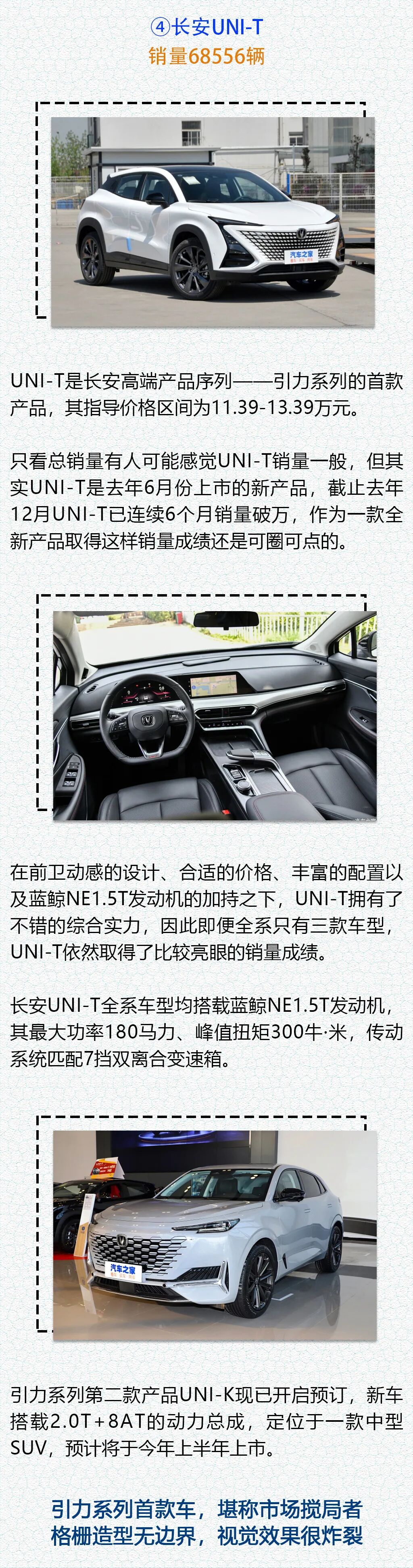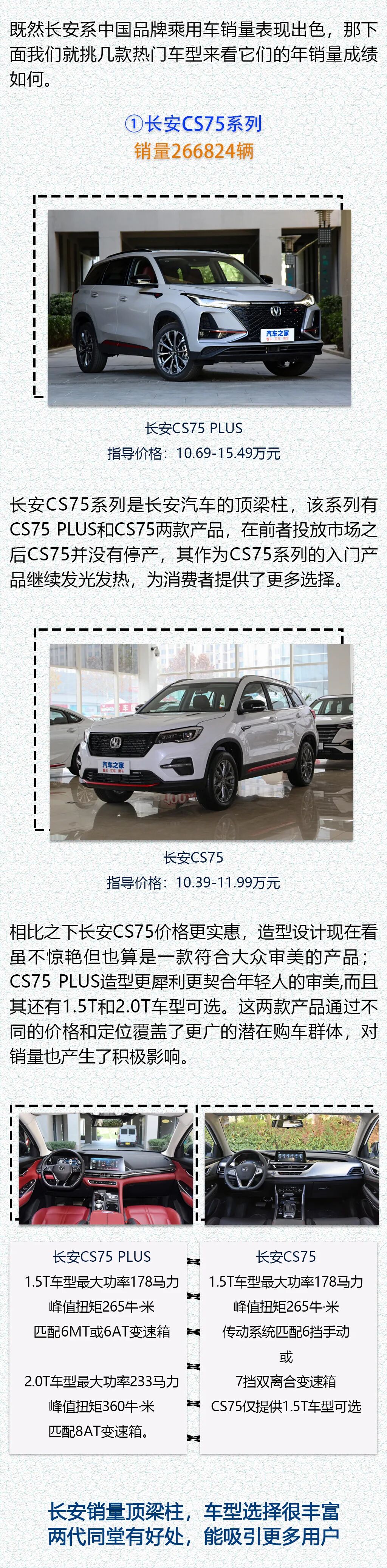 长安系中国品牌乘用车还包含长安欧尚旗下的产品,长安欧尚旗下产品去年销量为153258辆,受限于文章篇幅具体车型的销量信息不再赘述。