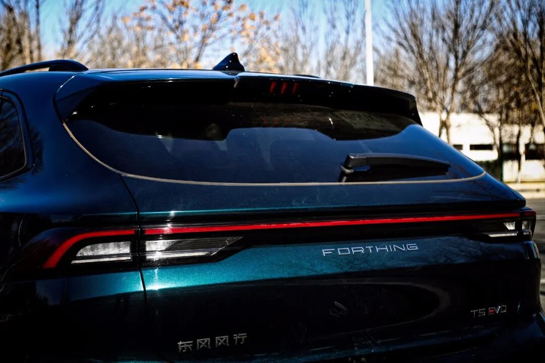 车尾部分,东风风行T5 EVO采用了时下流行的贯穿式LED尾灯,内部采用熏黑处理,车顶末端的小型扰流板上还配有高位刹车灯,再搭配双边共四出的排气设计,让整车处处体现出强烈的动感效果。