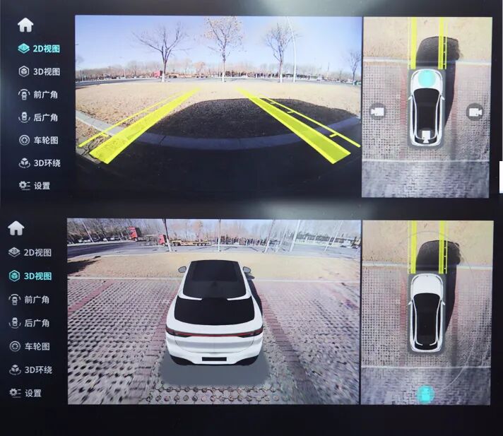 此外,中控大屏还有一项亮点功能就是360度全景影像。东风风行T5 EVO搭载的360度全景影像拥有3D模式,可以模拟出车身,让驾驶员监测车辆所处位置及环境。此外,还可以单独切换2D视角、切换前/后/侧方位等多个摄像头角度特写,可参考性很强。