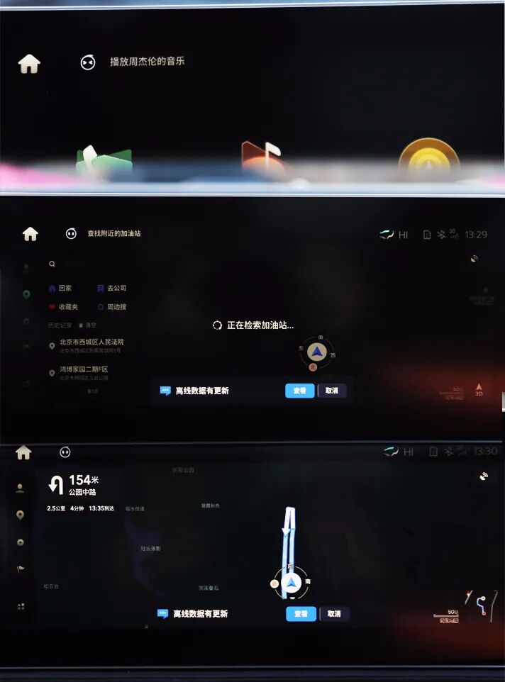这套车机搭载Future Link 4.0智联系统,带有导航、语音识别、远程控制和WiFi连接等功能。其中语音识别功能还是很实用的,比如开车时,无需动手操控,只通过语音控制即可实现娱乐、空调、天窗等操作,很是方便。比如说“播放周杰伦的音乐”,系统便会自动打开周董的歌曲;比如说“查找附近的加油站”,系统便会打开地图,并自动导航到你选择的目标加油站。