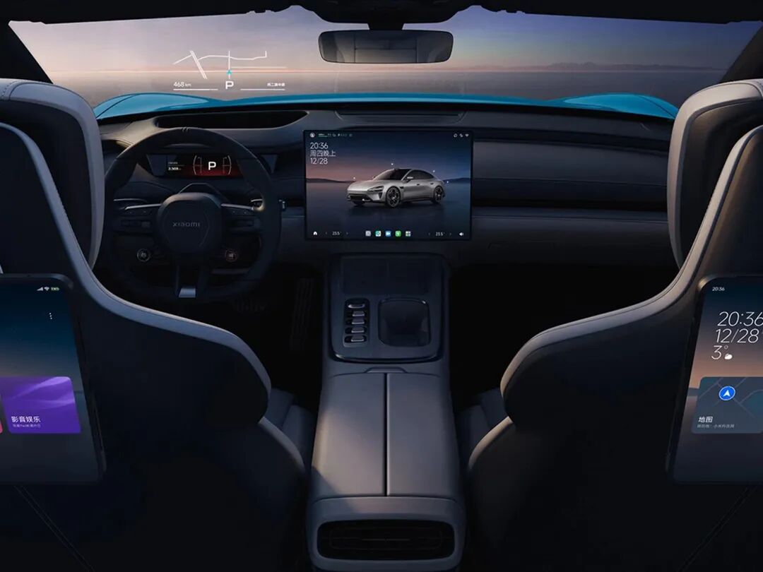 新车内饰并没有一味的减配物理按键,这点要给好评。屏幕方面,新车采用7.1英寸翻转式仪表屏和16.1英寸中控屏,分辨率为3K,并搭载56英寸HUD,最高亮度13000尼特。车机系统方面,小米澎湃OS将会搭载于SU7的车机系统中,采用骁龙8295芯片,小米平板可无缝上车,做为后排拓展屏使用。小米SU7支持五屏联动,应用生态涵盖主流车载应用、平板应用和手机应用,支持CarPlay和airplay,且支持苹果iPad上车。