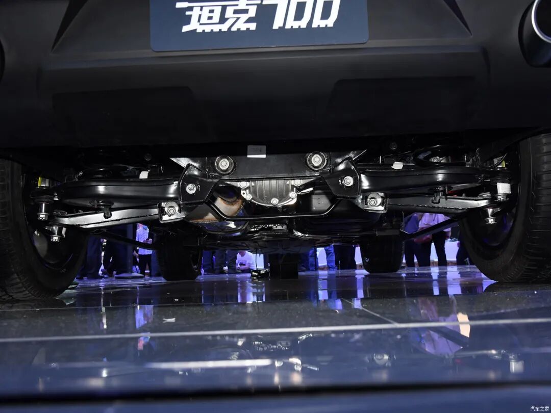 坦克700 Hi4-T外观延续“机甲科技”路线,造型颇为硬朗,判若大号的坦克400,力量感与硬派风格充斥着整个车身,整体造型也与家族兄弟坦克300/坦克500有着非常明显的差异化风格。尺寸方面,新车长宽高分别为5090(5113)/2061/1952mm,轴距为3000mm。接近角和离去角分最大别为37.8度和37.6度,最大涉水深度为970mm。值得一提的是,坦克700 Hi4-T的牵引套装包含12500磅前绞盘、2.5吨电动拖车钩+拖车取电口。