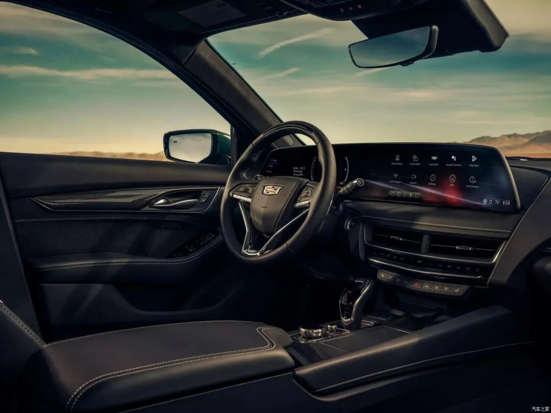 内饰追随普通版车型的脚步,换上了33英寸的曲面一体式大屏幕,科技感进一步提升,并且屏幕背面还有可以点亮的凯迪拉克标志。
