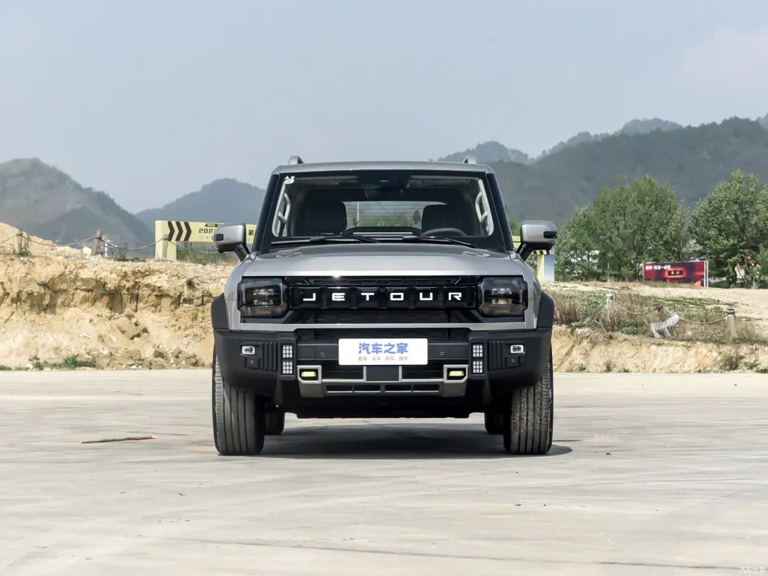 新车造型设计其实各位都不陌生,前舱盖隆起进一步提升了气势。JETOUR光影格栅与纵横矩阵式头灯紧密衔接,令前脸更显宽大。前包围造型相当粗犷硬派,不同的配色加上灯组光源带来一些活泼气息。