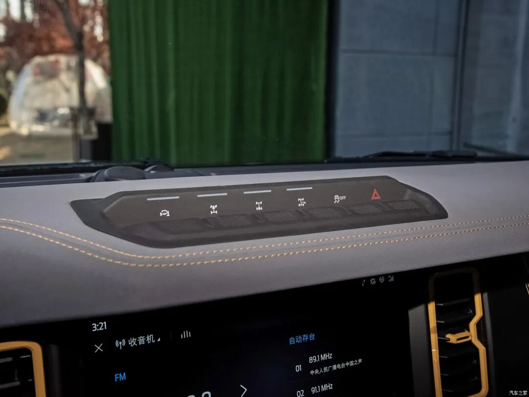 大屏下方保留了多媒体和空调控制的物理按键,这对于一台深度越野车来说非常必要,尤其是在敞篷环境下,恶劣的环境中可能物理按键会操作更便捷。