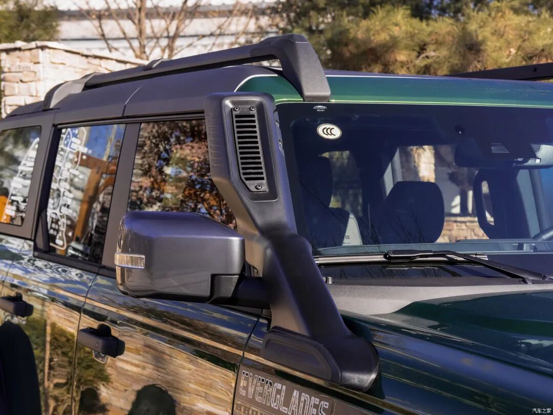 大沼泽地配有原厂涉水喉,最大涉水深度925mm(不带涉水喉850mm),带有EVERGLADES字样的贴纸也并非仅仅是为了好看,而是可作为涉水深度的参考。