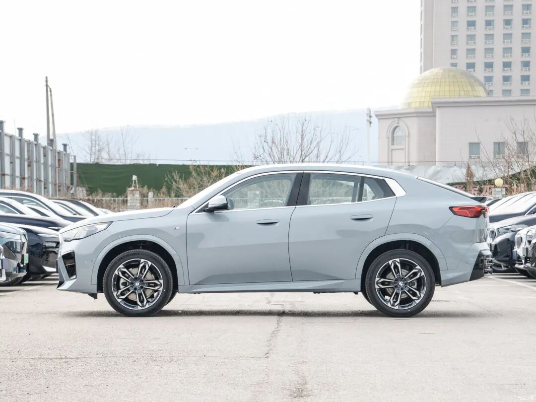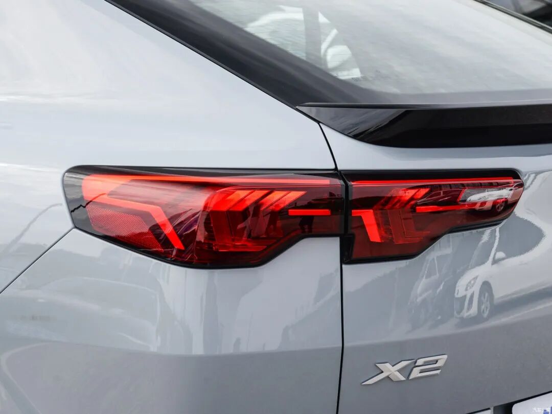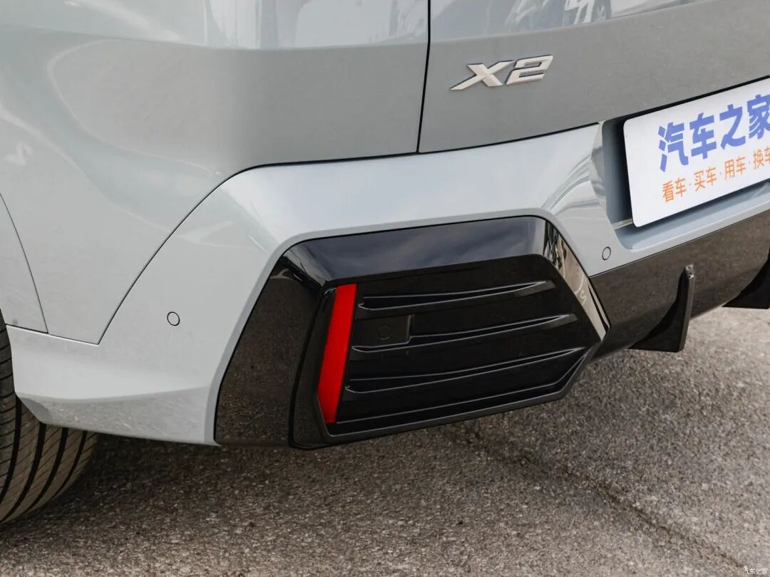 车侧部分,新车依旧拥有灵动的车身姿态,流畅的车身线条似乎能够让我们看到宝马X4/X6车型的影子。车身尺寸方面,新车长宽高分别为4554/1845/1590mm,轴距为2692mm,较老款宝马X2整体大了一圈。