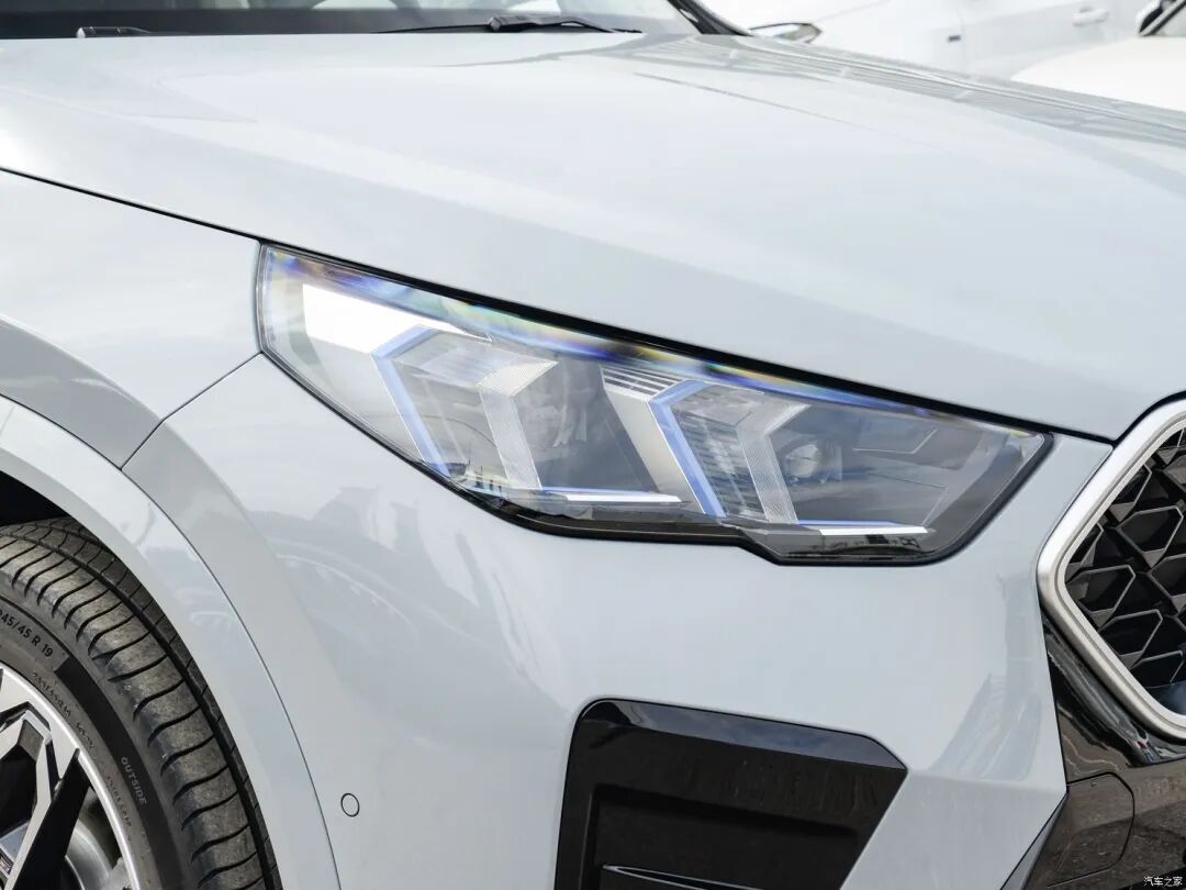 来看新车,全新宝马X2对宝马经典的双肾格栅设计进行了全新诠释,燃油版车型采用高亮黑进行装饰,两侧大灯配备矩阵式LED光源,可以实现自适应远光灯以及弯道补光等功能。下方大尺寸进气口内部采用了黑色网格设计,运动氛围浓郁,两侧通风口可以帮助刹车系统散热,整体具备相当强的攻击性。
