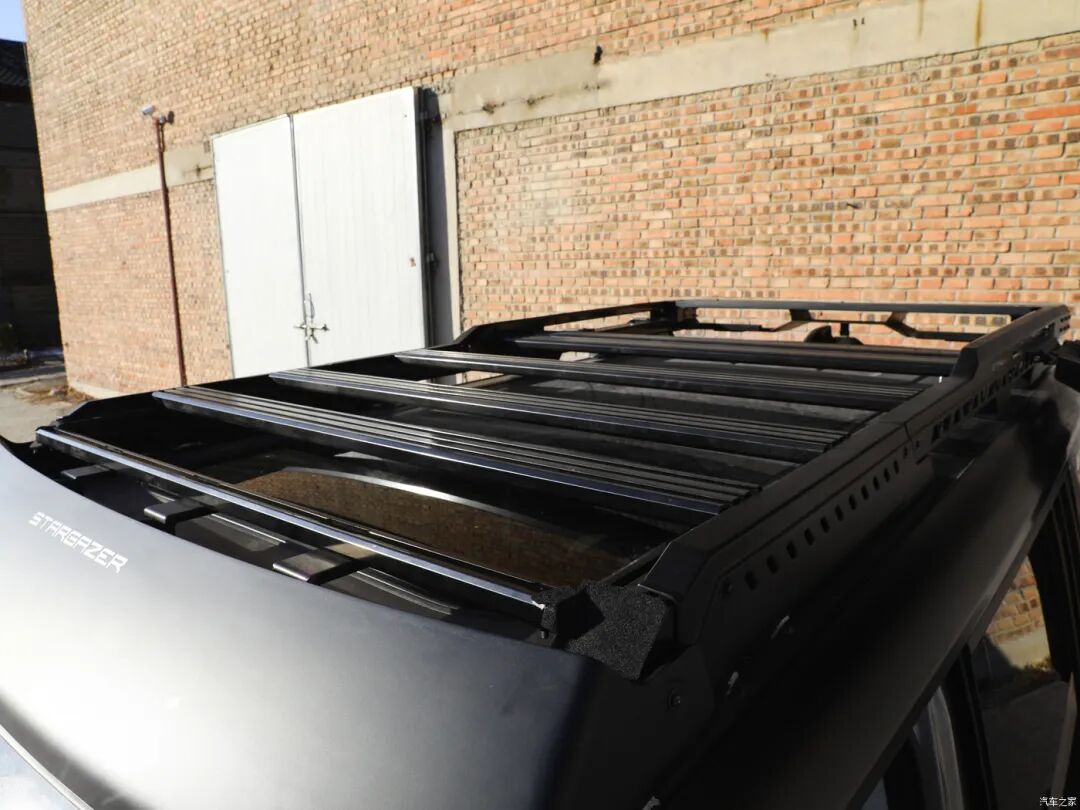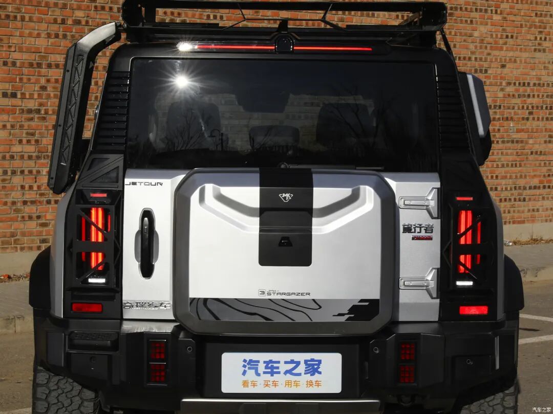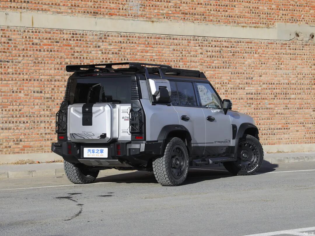 方正的造型是一款硬派越野车的基本操作,多功能车顶平台以及尾窗加装的舷梯、侧书包令这款车的刚硬气质更上一层楼,回头率也因此大增。