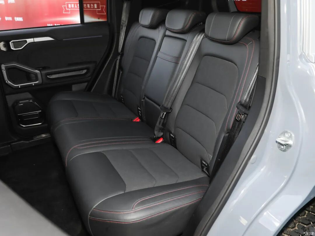 侧开尾门在硬派越野车上常见,地板规整同时两侧还有锚点、网兜、电源接口。放倒后排座椅靠背之后会形成平坦的储物空间。