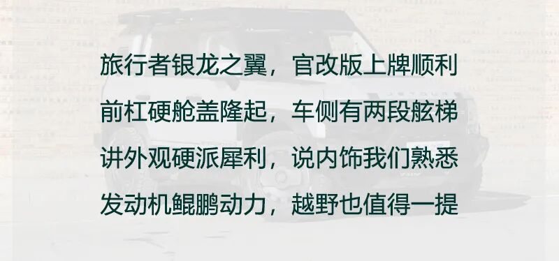 旅行者银龙之翼拥有更张扬硬派的造型,回头率更加出色,它的出现为本就销量不错的旅行者车系提供了新的选择,那些追求个性的年轻消费者正是它要去迎合拉拢的目标群体,从而让车系的销量更上一层楼。