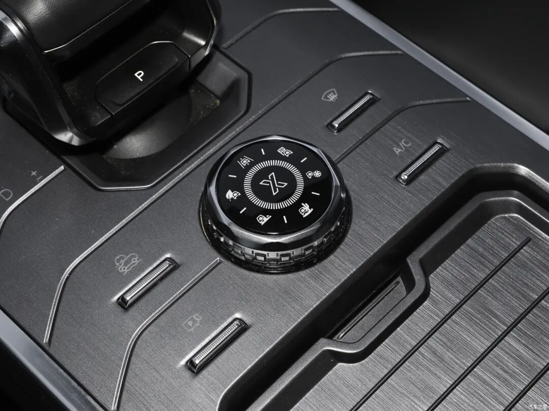 新车内饰与普通版车型基本一致,悬浮式中控屏非常惹眼。中控台通过不同的颜色搭配以及横向线条营造出层次感。电子挡杆前方储物格有手机无线充电面板,后方有地形模式选择旋钮。