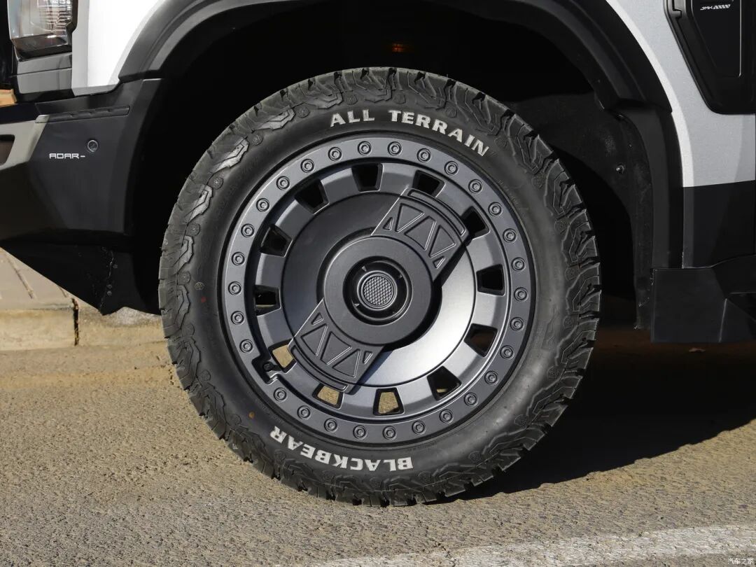 20英寸的灰黑色轮圈造型灵感来自于太空舱门,风格别致。与之匹配的是来自于BLACKBEAR品牌的AT全地形轮胎,规格为255/55 R20。
