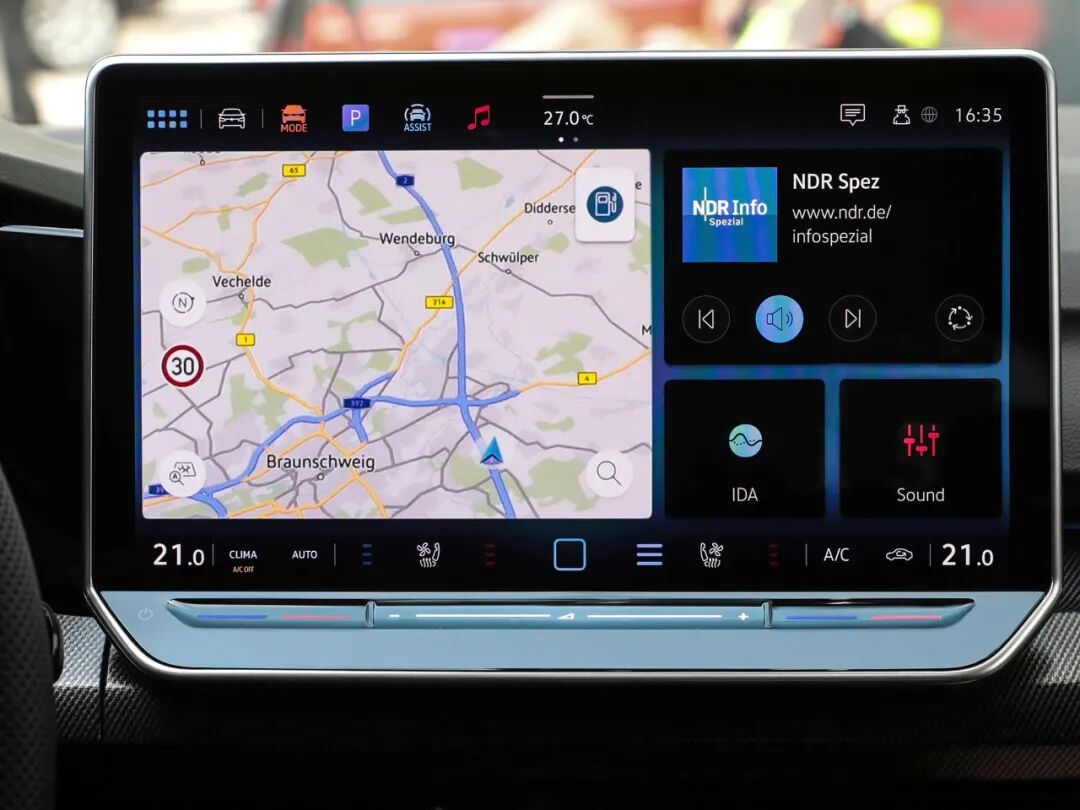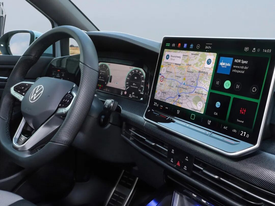 新款高尔夫的变化更加集中在车内,其内置全新的MIB4车机系统,拥有智能IDA语音助手,通过自然语音交互,不仅可以控制空调、电话或导航等功能,还可以播报天气预报,回答常识问题,获取各式线上信息,此外,人工智能大语言模型ChatGPT,也将被融合于IDA语音助手中。