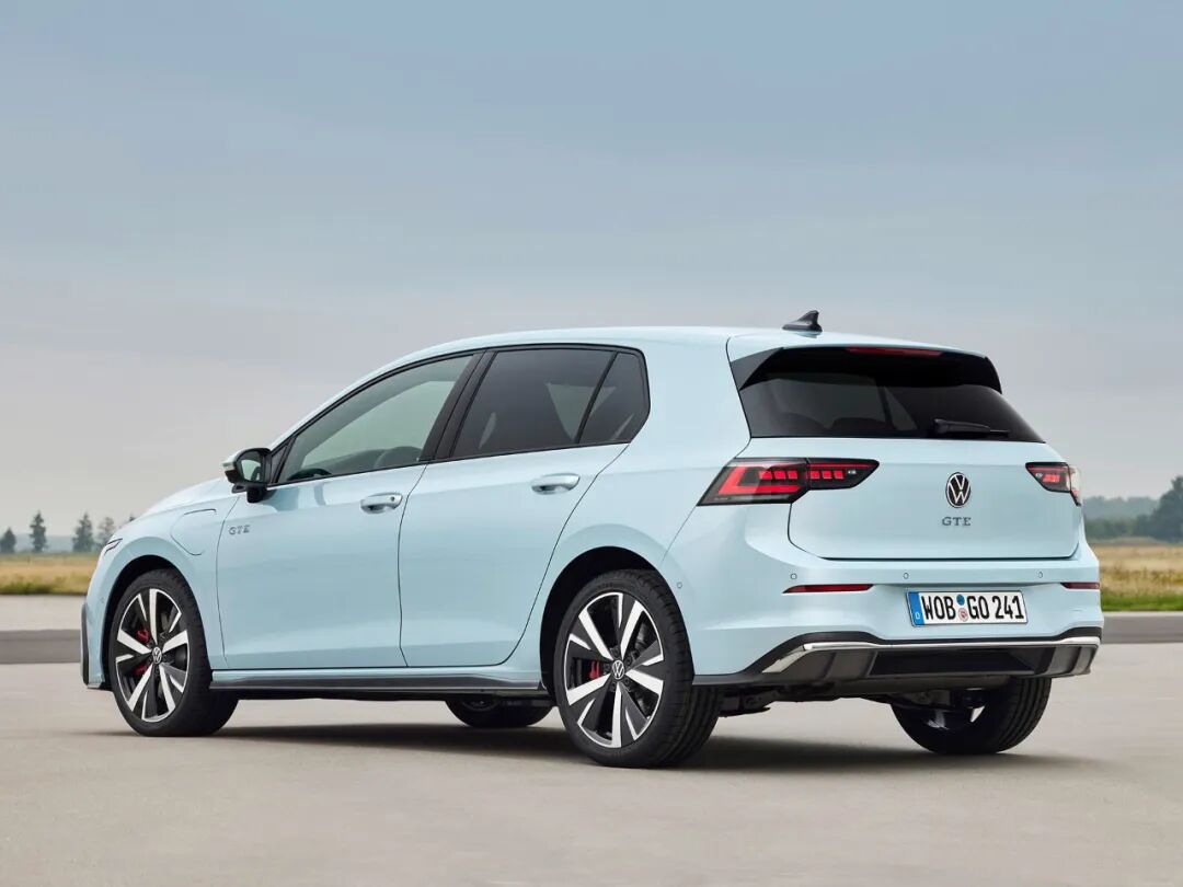 除了燃油性能钢炮GTI外,还有一台与其“风格相反”的高尔夫GTE,定位插电混动版性能车型。其前脸造型与GTI保持一致,车尾则采用了隐藏式排气布局。特别是淡蓝色涂装看起来非常清新,不过红色的制动卡钳依然暴露了其性能版定位。
