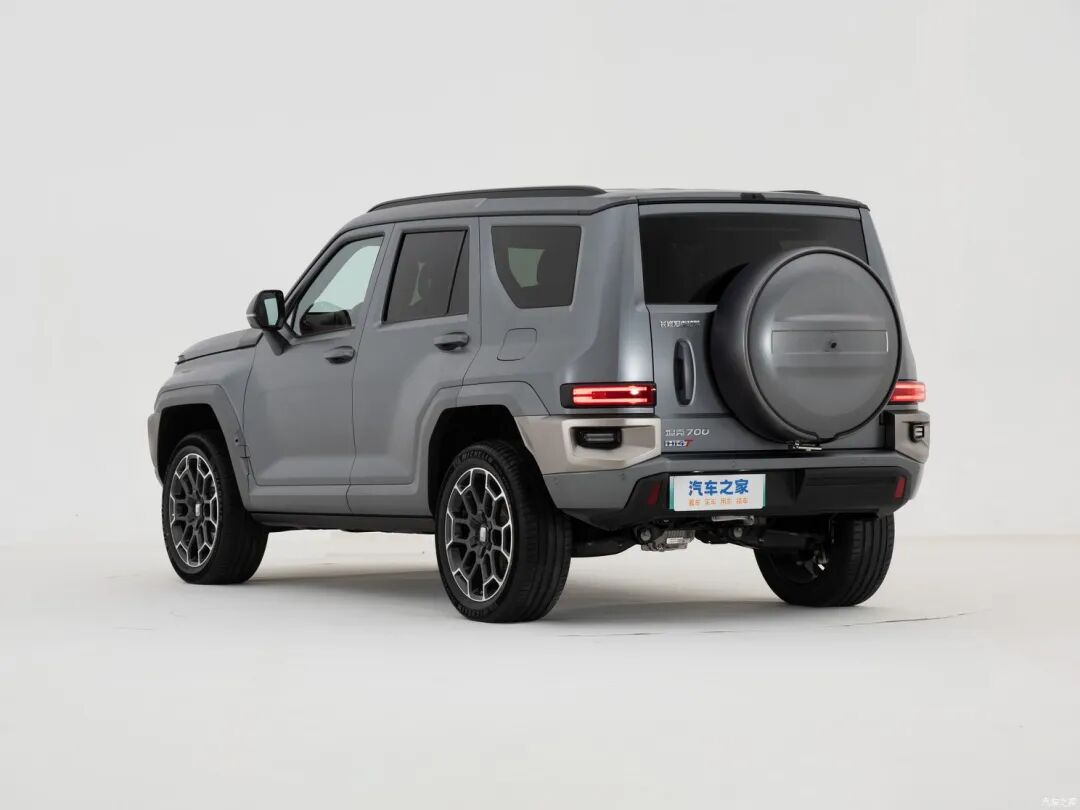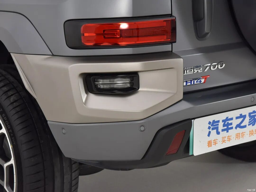 来到车尾,坦克700 Hi4-T采用侧开尾门,并会提供集成后摄像头的备胎罩。该车的尾灯与后转向灯采用分体式的设计,细节处理比较精致。值得一提的是,坦克700 Hi4-T的牵引套装包含12500磅前绞盘、2.5吨电动拖车钩+拖车取电口。