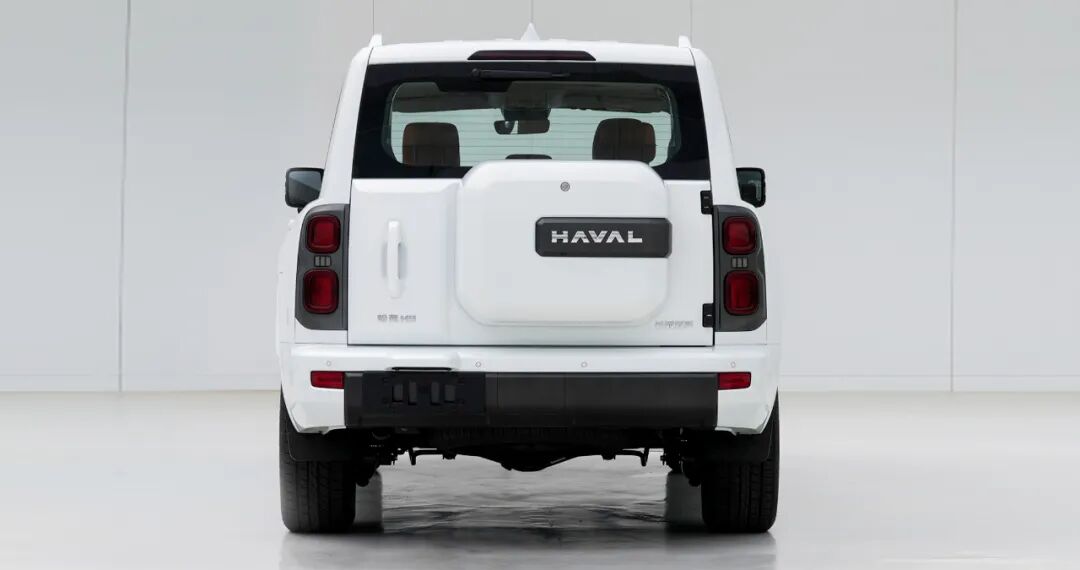尾部造型同样为最新的家族式风格,一副标准的硬派越野车模样,外挂备胎+纵向分布的尾灯组均没有缺席。