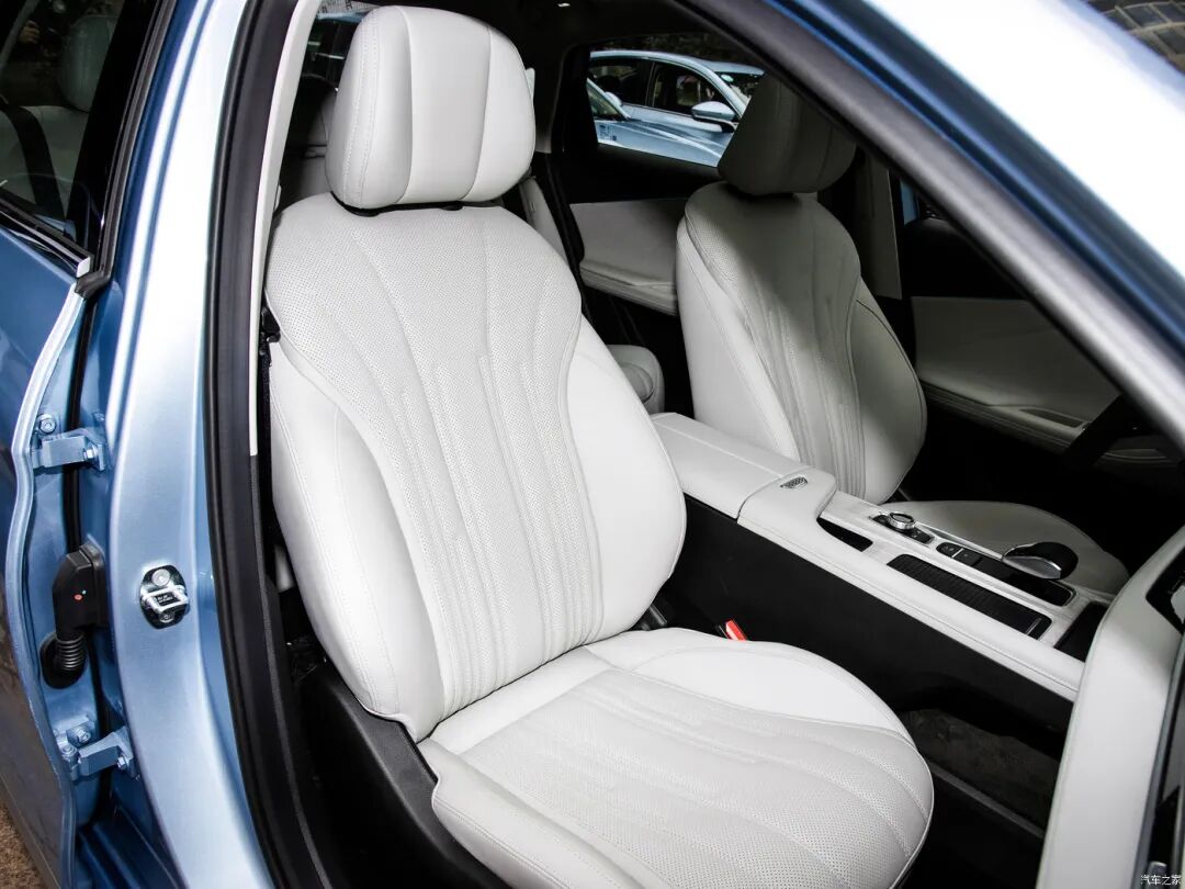 座椅采用仿皮材质包裹,缝线和打孔有助于提升品质感,实拍顶配车型前排座椅采用电动调节同时还有座椅加热功能,主驾驶还额外支持座椅通风。