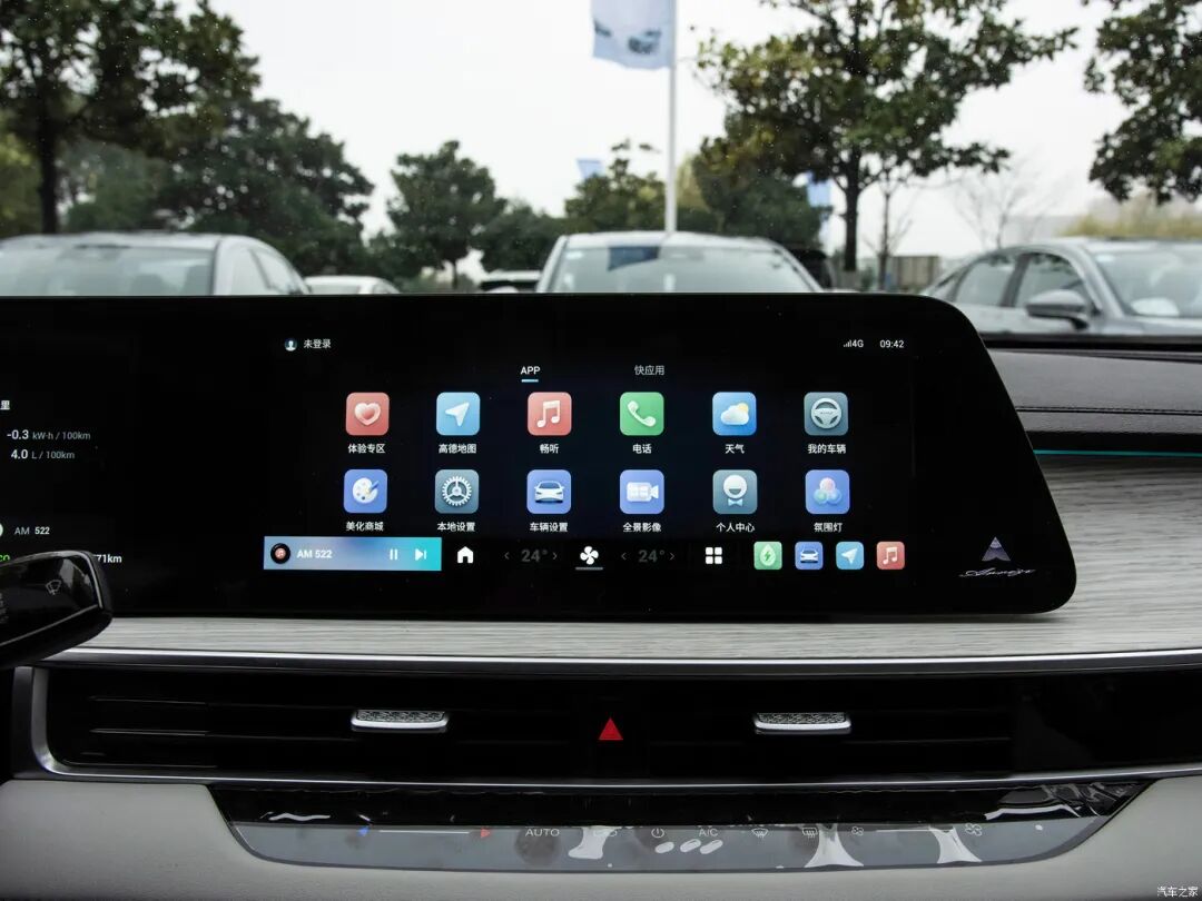 12.3英寸中控屏搭载Lion5.0“雄狮智云”系统,采用高通骁龙8155芯片,具有苹果CarPlay、华为HiCar、语音助手、设置、在线导航、全景影像以及在线影音娱乐功能,可以胜任日常使用。