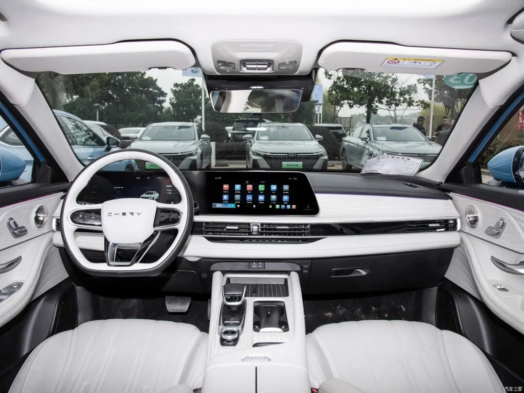 新车内饰采用奇瑞品牌的家族设计,中控台造型比较饱满,不同的颜色搭配划分出层次。双联屏以及将前排座椅调节按键布置在门板上的设计如今也挺常见。