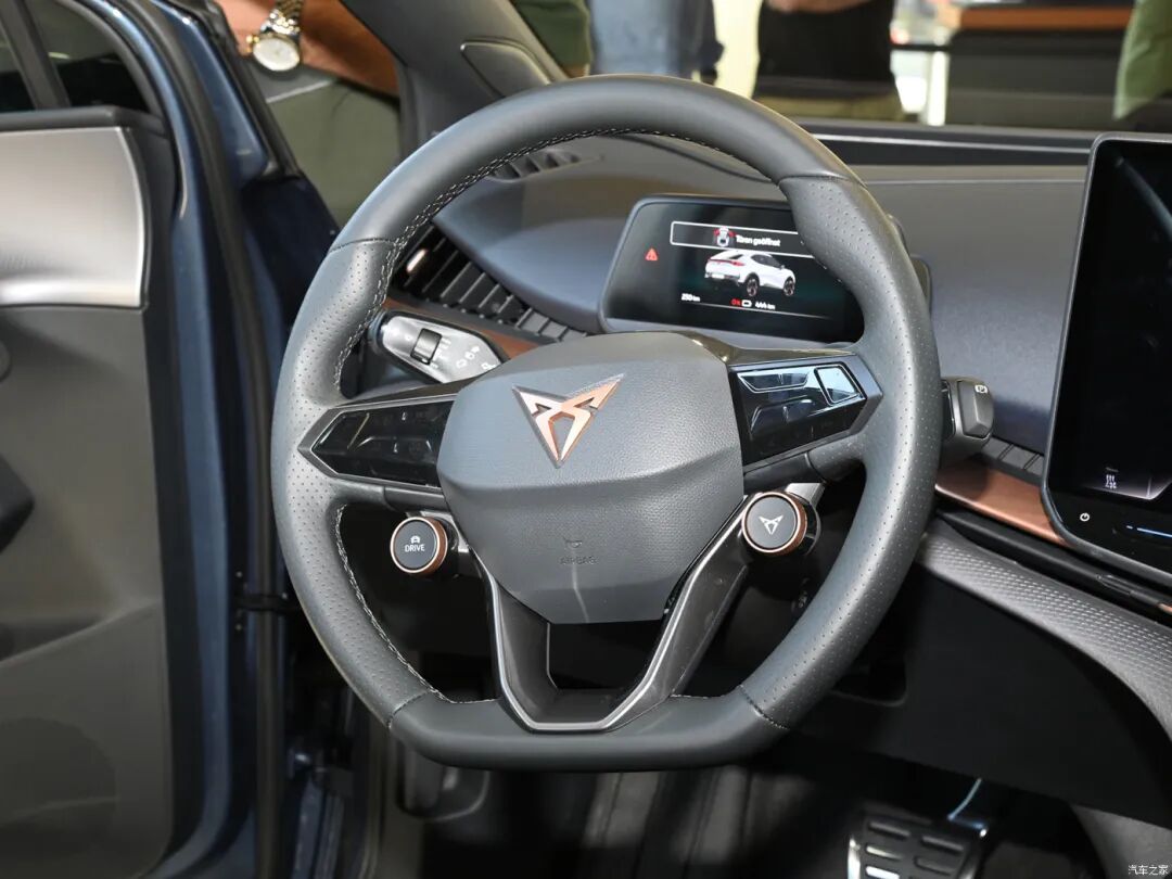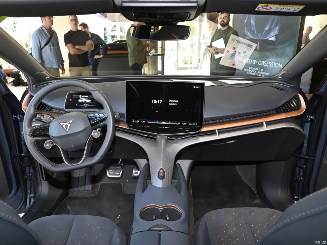 Cupra Tavascan的内饰设计是令人眼前一亮的,毕竟当下的新车内饰造型实在是有些趋近。新车简约的中控台呈Y字形布局,不同的颜色搭配营造出层次感,呈现出金属质感的装饰可以提升运动感。硕大的中控屏也是如今新车的必备配置。