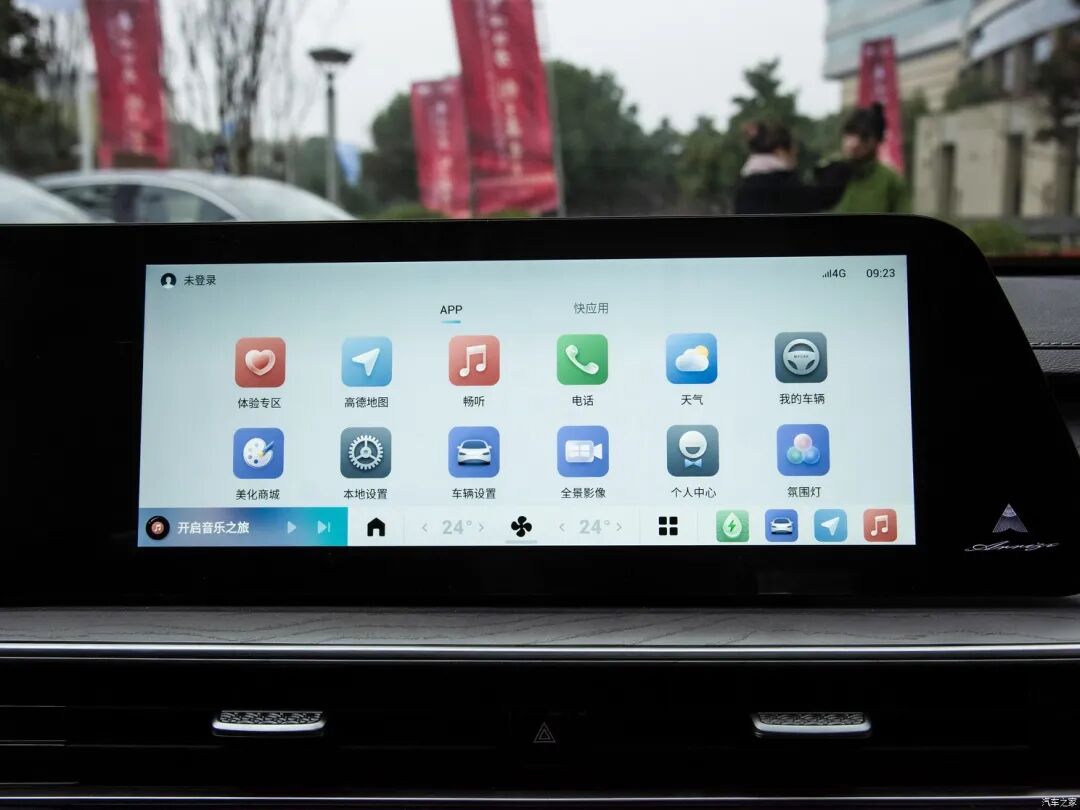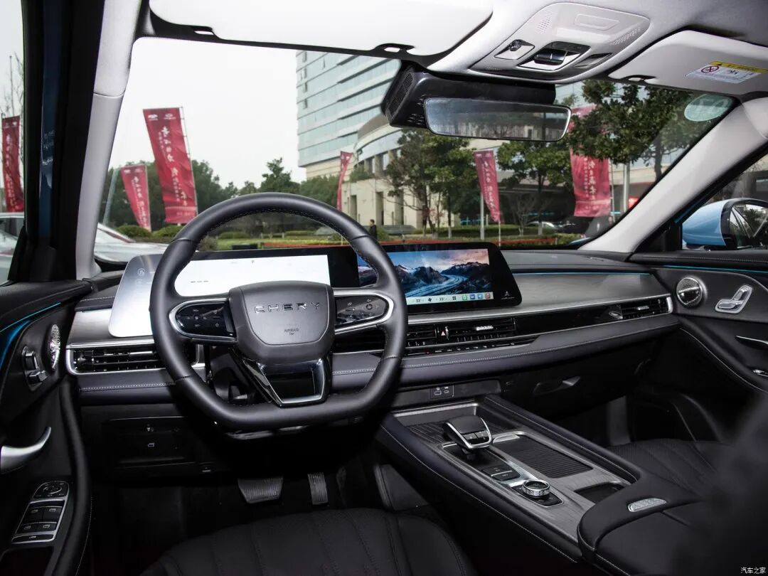 进入车内,新车的中控台给人的第一印象还是比较规整的,整体来看比较符合家用车市场的风格和审美。双12.3英寸联屏设计可以带来一定的科技感,内部集成无线CarPlay+华为HiCar功能。同时,平底式方向盘则能够赋予座舱内部一定的运动氛围。配置层面,新车将会配备可开启式全景天窗以及主驾驶席座椅通风和加热功能。