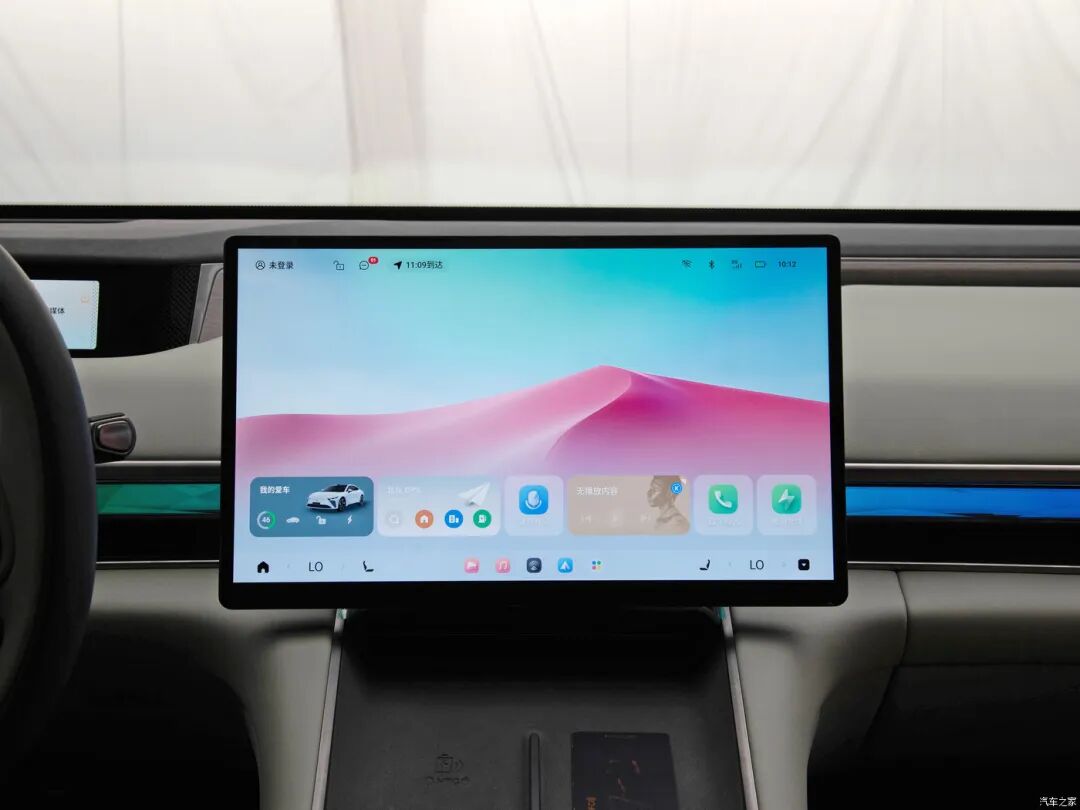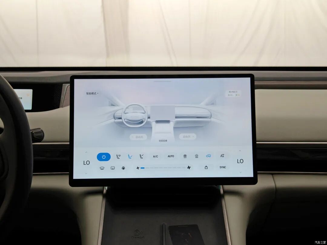 一体式环抱座舱内,15.6英寸2.5K中控屏赫然抢眼,采用全新场景化的界面设计,内置8155芯片,首搭讯飞星火认知大模型,还支持CarPlay与HiCar手机互联。不过,要知道市面上最新一代车型已经有使用8295芯片的了。