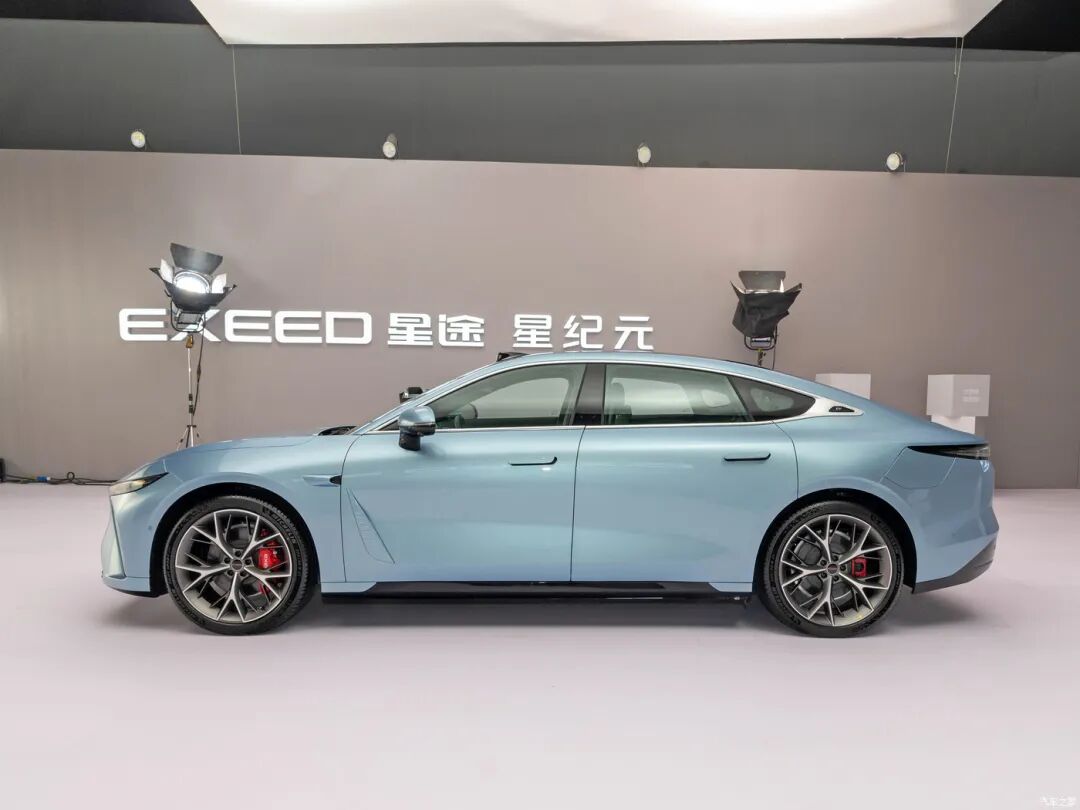 车侧,标准的轿跑式的车身设计,这点似乎已经成为现阶段车企约定俗成的做法了。星纪元 ES腰线颇具看点,由前至后逐渐清晰,也令车身看起来很有肌肉感。细节处,采用了隐藏式门把手,翼子板处还设有摄像头,而在多辐轮圈的内部,还有一颗6活塞制动卡钳,这也是其百公里制动距离33.1米的关键之一。