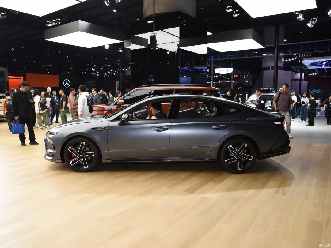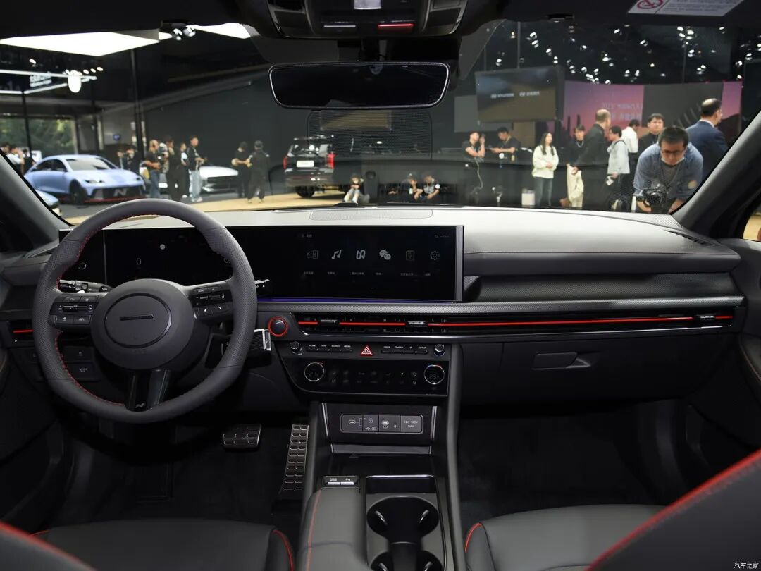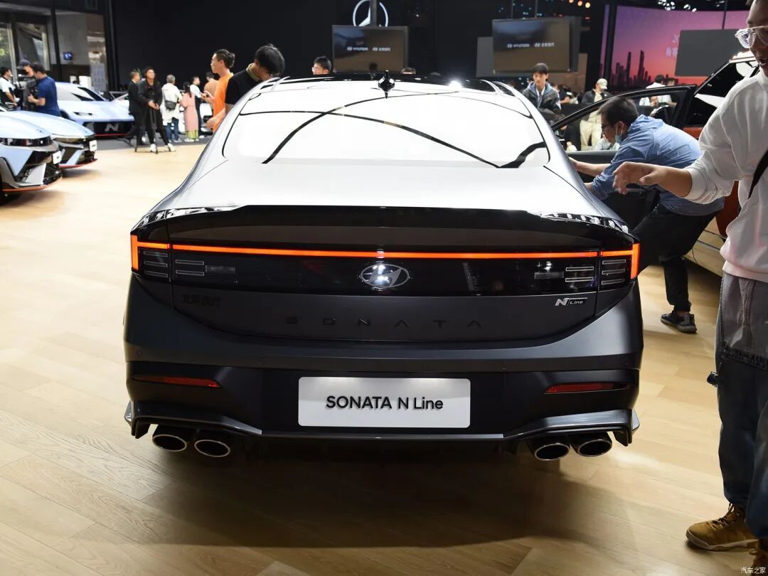 来到车侧,新车采用轿跑式的外观设计,腰线设计充满力量感,有着很强的运动属性。尾部方面,其采用当下流行的贯穿式尾灯组,并且拥有非常丰富的线条。此外,N Line版本车型采用双边共四出排气布局,翼子板处拥有专属标识,并将提供19英寸轮圈。