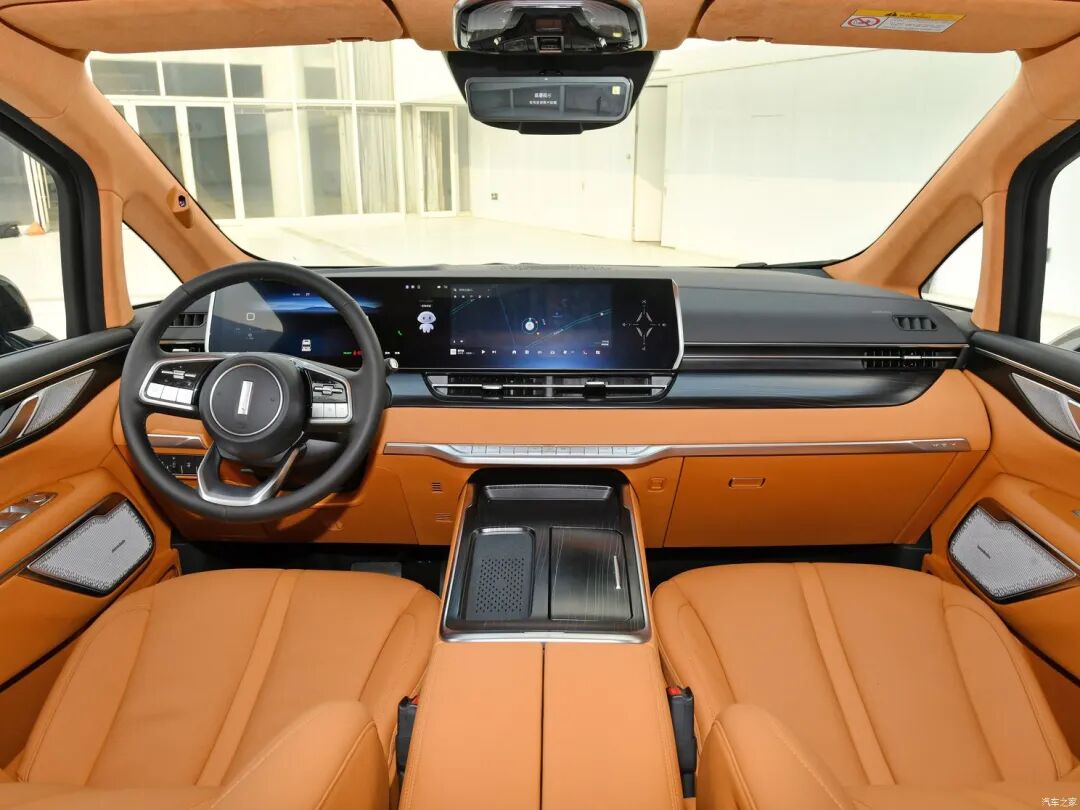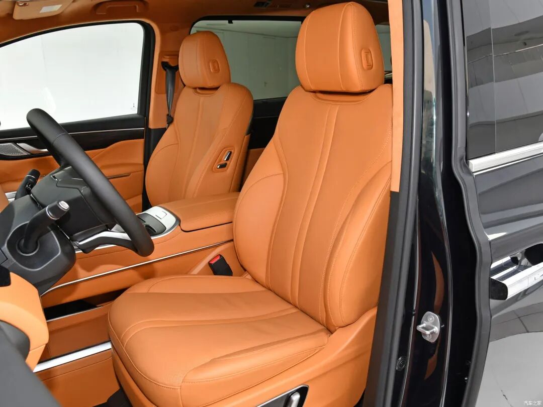 内饰方面,整体设计简洁,采用了大尺寸双联屏的设计,中控台大量横向线条进一步拓宽了车内的空间感。行政加长版不仅是尺寸加长和配置的增加,更是针对更高端商务需求,专属定制开发的豪华MPV车型。该车采用的六座布局均为电动调节座椅(带加热/通风),前两排搭载了按摩功能,并且座椅采用NAPPA皮革包覆。