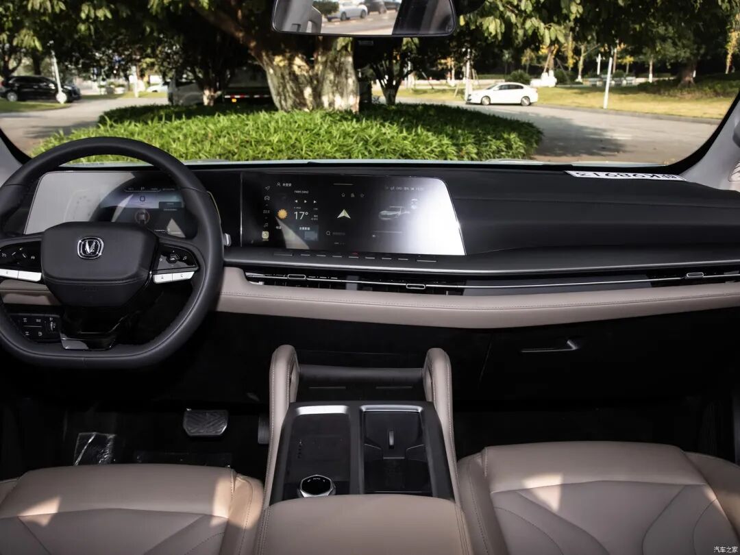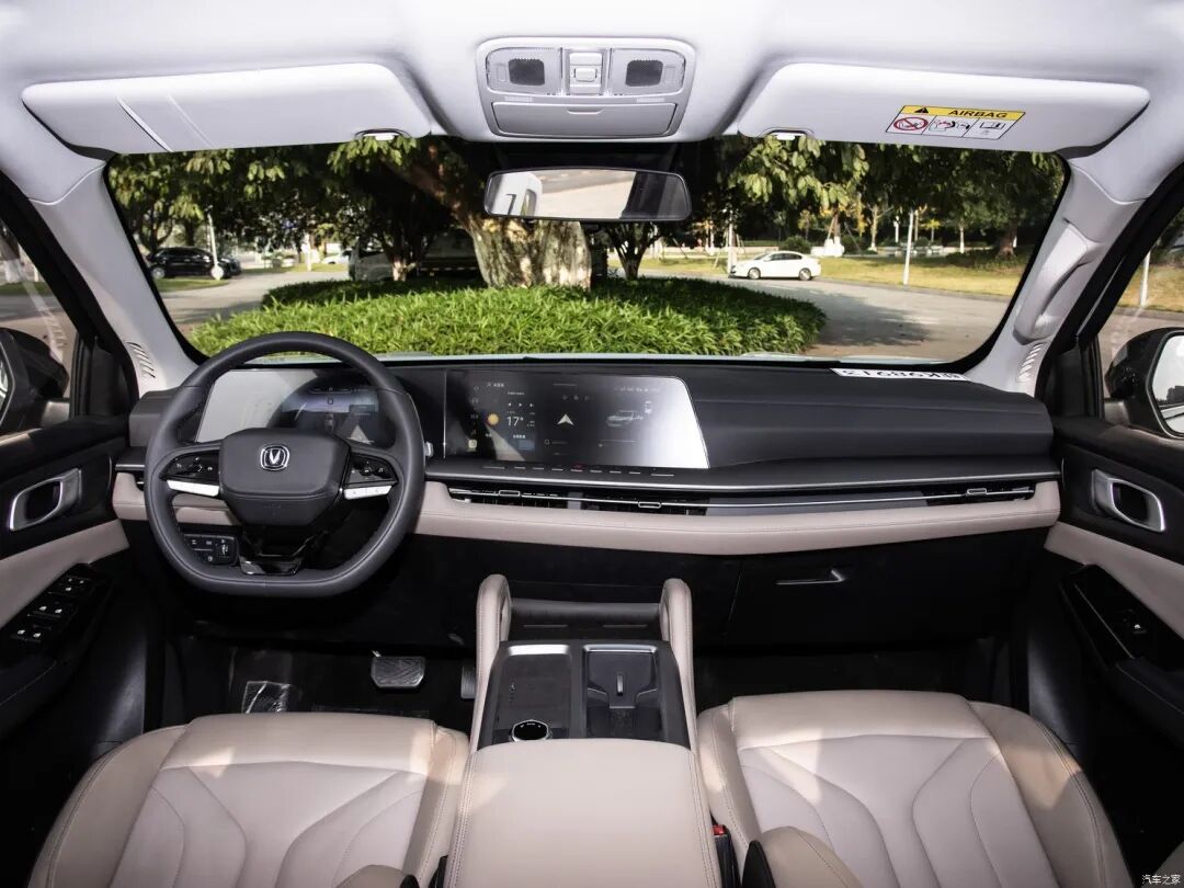 内饰造型采用简洁化的设计理念,同时带来一定的科技感,可以看到,新车采用了全液晶仪表盘与中控多媒体显示屏相连接的双联屏设计,配合三辐式多功能方向盘、贯穿式的空调出风口,营造科技属性。