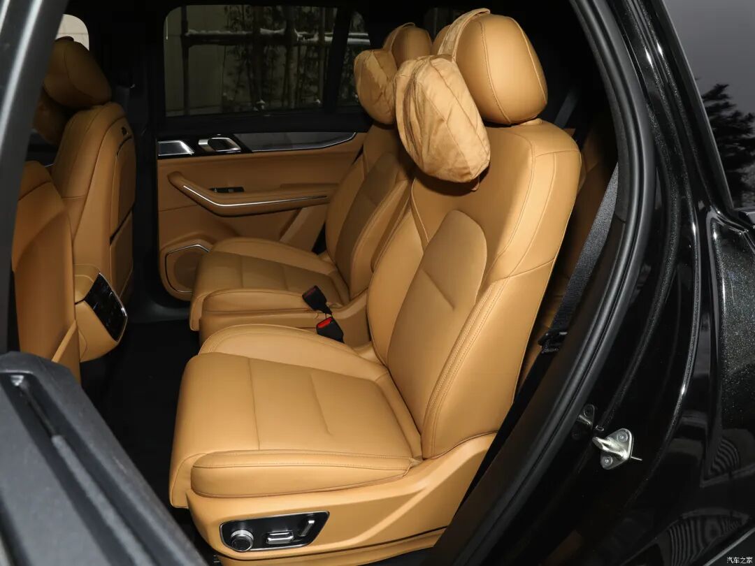 动力部分,采用2.0T+3DHT+三电机的布局,系统最大输出功率408kW,最大输出扭距844N·m,4.9秒即可完成0-100km/h加速,最高车速可达239km/h。综合油耗低至1.0L/100km(WLTC),馈电油耗7.5L/100km。