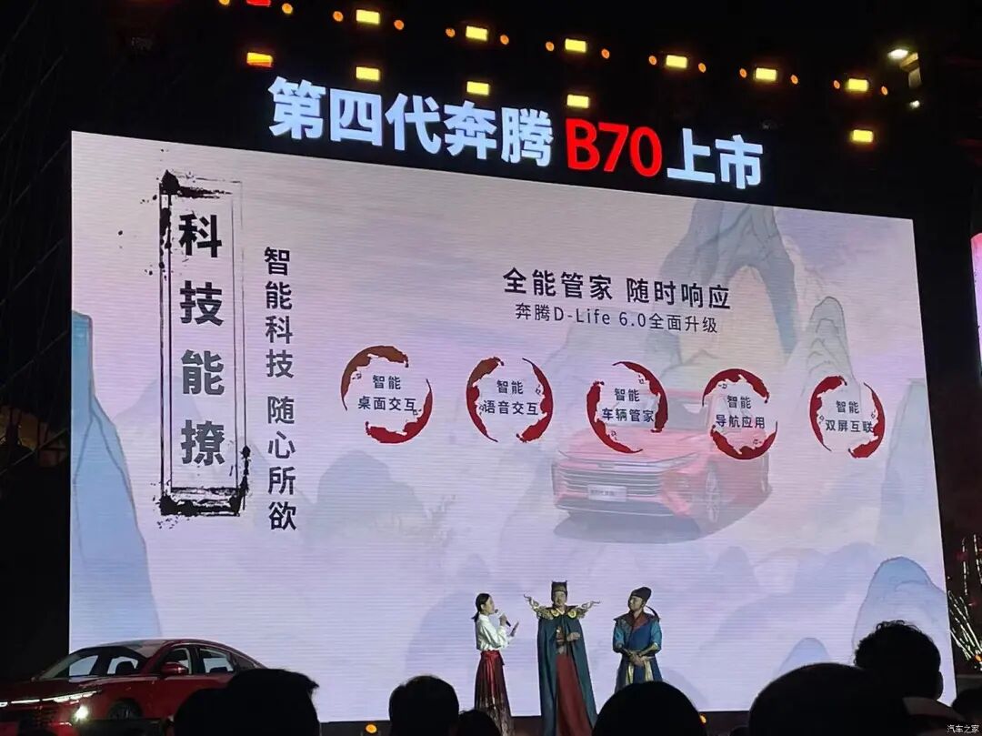 奔腾B70也算是中型车老将了,第一代产品于2006年上市,第二代于2014年上市,第三代车型则与2020年上市,当时全系搭载的都是1.5T发动机,后续第三代车型补足了2.0T动力。本文主角其实是三代车型的中期改款,官方称之为“第四代”。