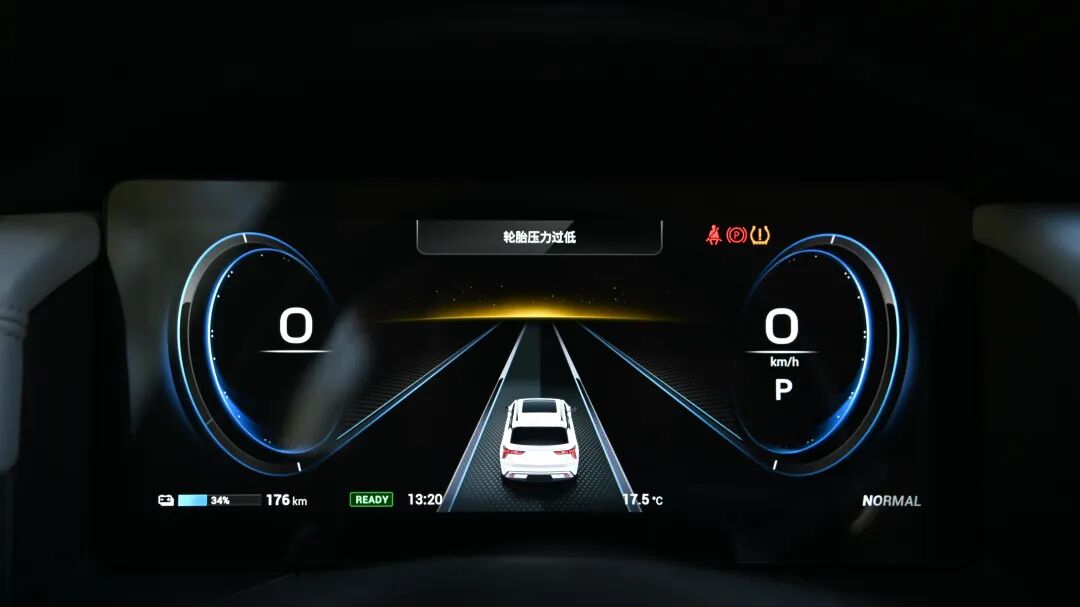 12.3英寸全液晶仪表风格和兄弟车型AION V相似,深色背景带来良好的可视性,皮质打孔方向盘触感较为出色,但握环内部填充不够饱满。