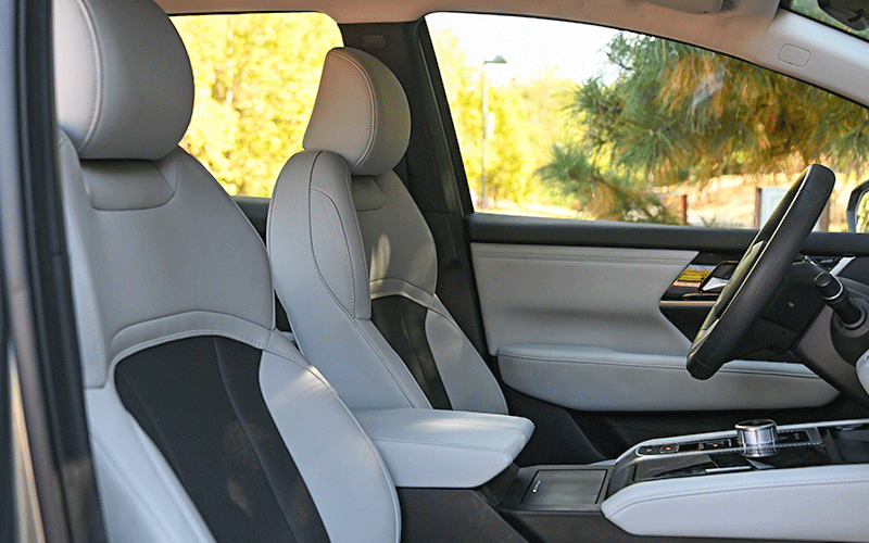 阿图柯AIRTREK采用黑白拼色座椅,整体配色方案和内饰设计比较搭调,在配置上前排座椅提供通风、加热以及电动调节角度功能。