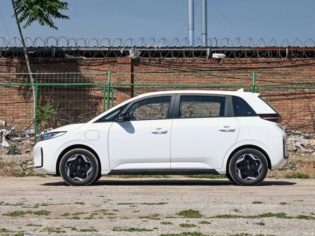 虽然比亚迪D1看上去很像一台“大号飞度”,但其实它是一款紧凑型MPV,2800mm的轴距已经与一些中型车旗鼓相当了。侧面同样是简洁的处理手法,黑银双色轮圈带来一些时尚感,左侧采用常规的平开门,右侧后排采用电动侧滑门。
