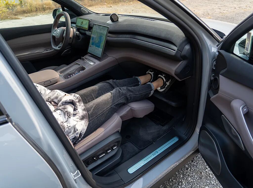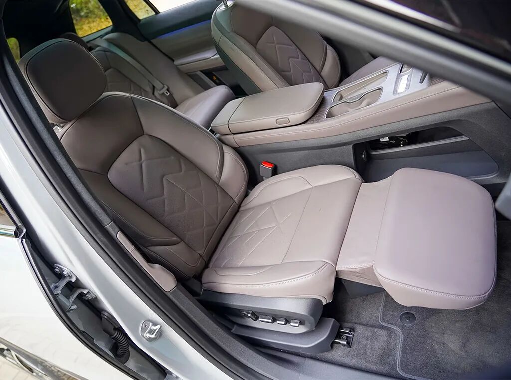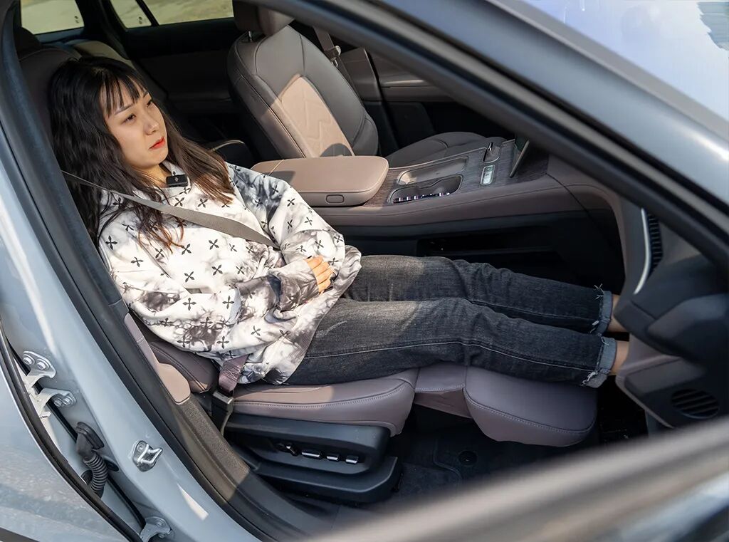 作为一款五座车型,全车最舒服的座位属于副驾驶的乘客。升起腿托,再放下电动折叠的脚托,就可以获得非常舒展的坐姿。唯一的不足,是后排乘客的头部空间会比较局促。